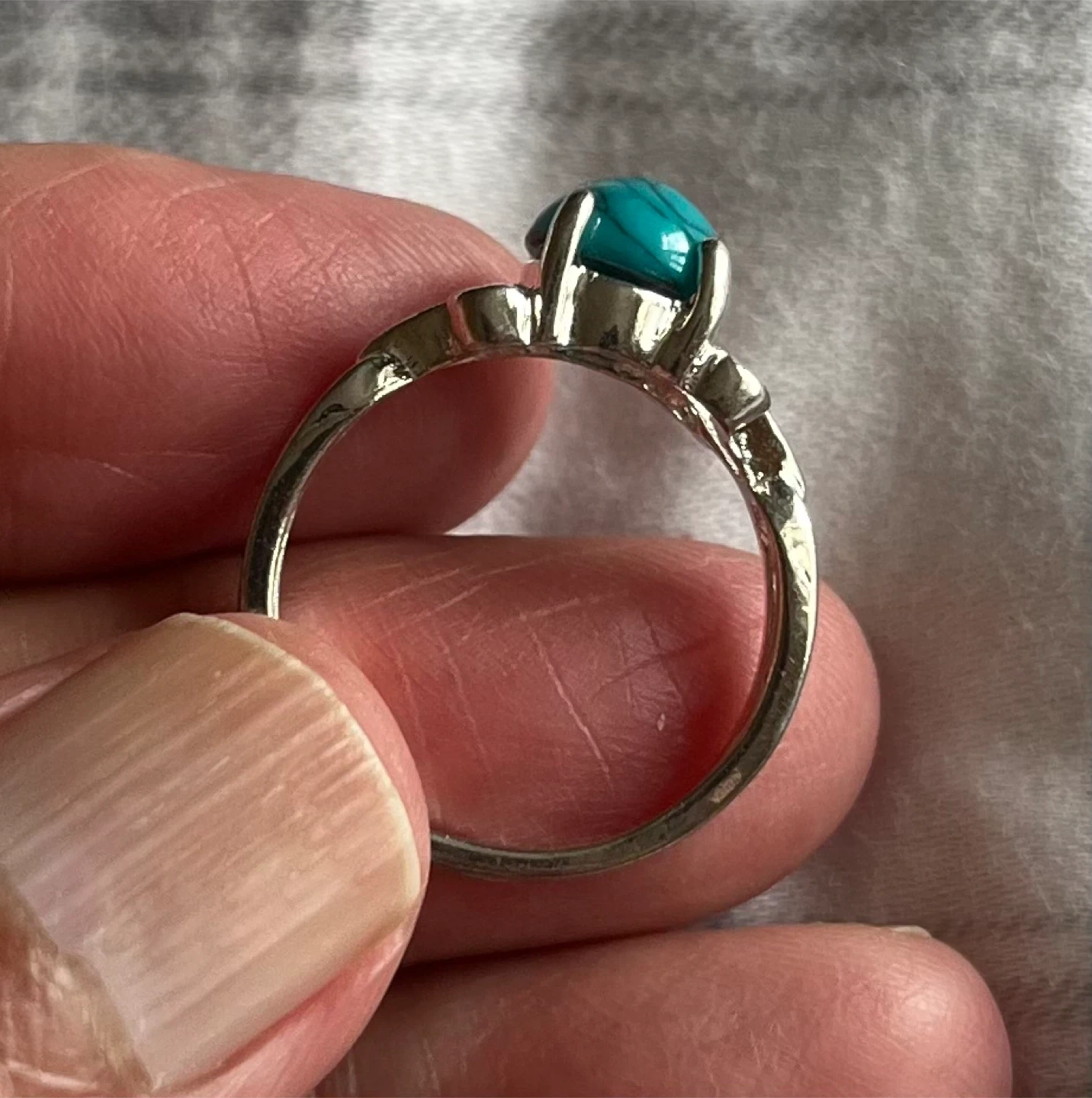 For laddies Selling a lovely ring featuring a turquoise stone. It's a size 7, as shown in the photos. The band appears to be silver in colour. A great addition to any jewelry collection!