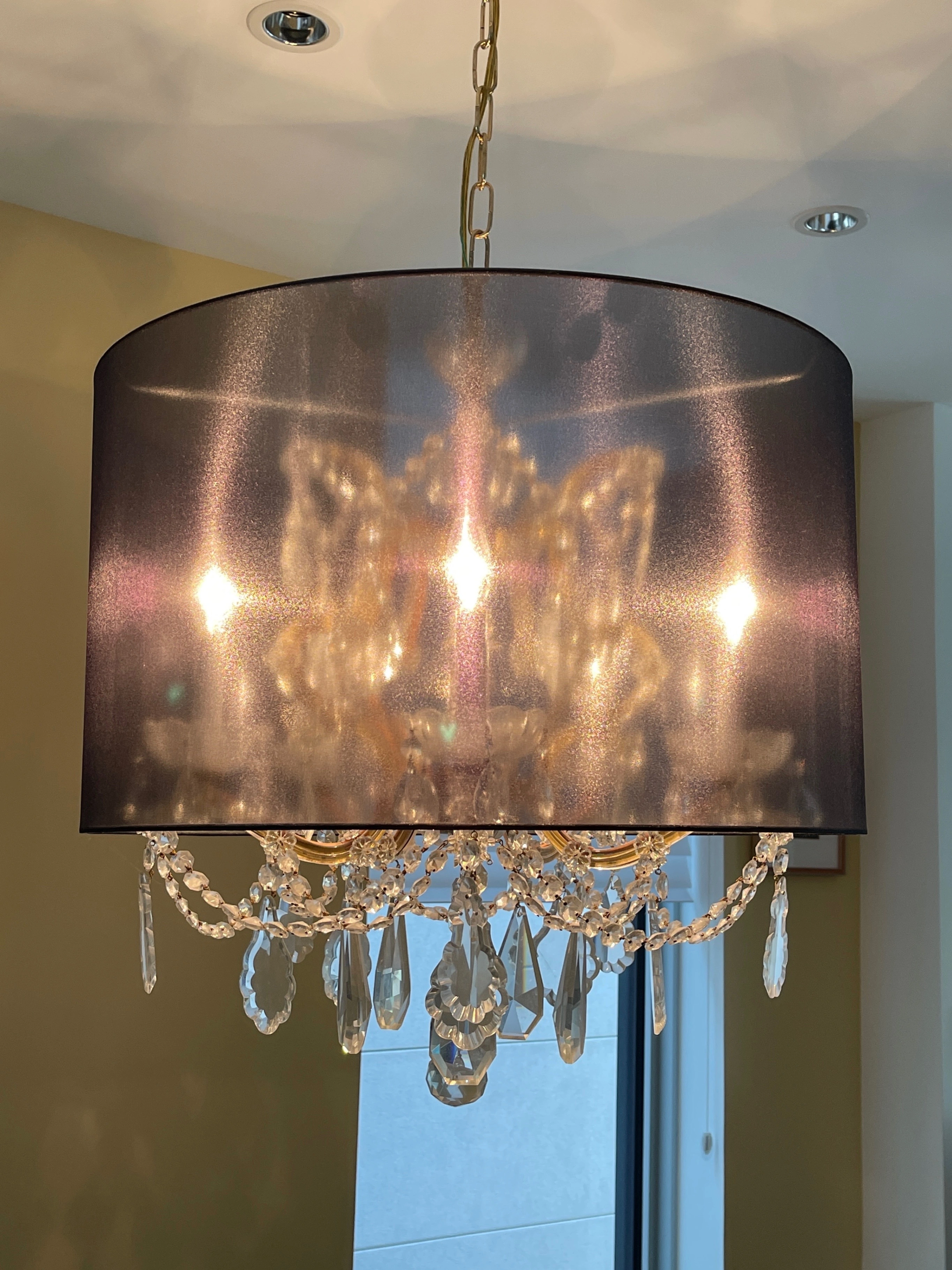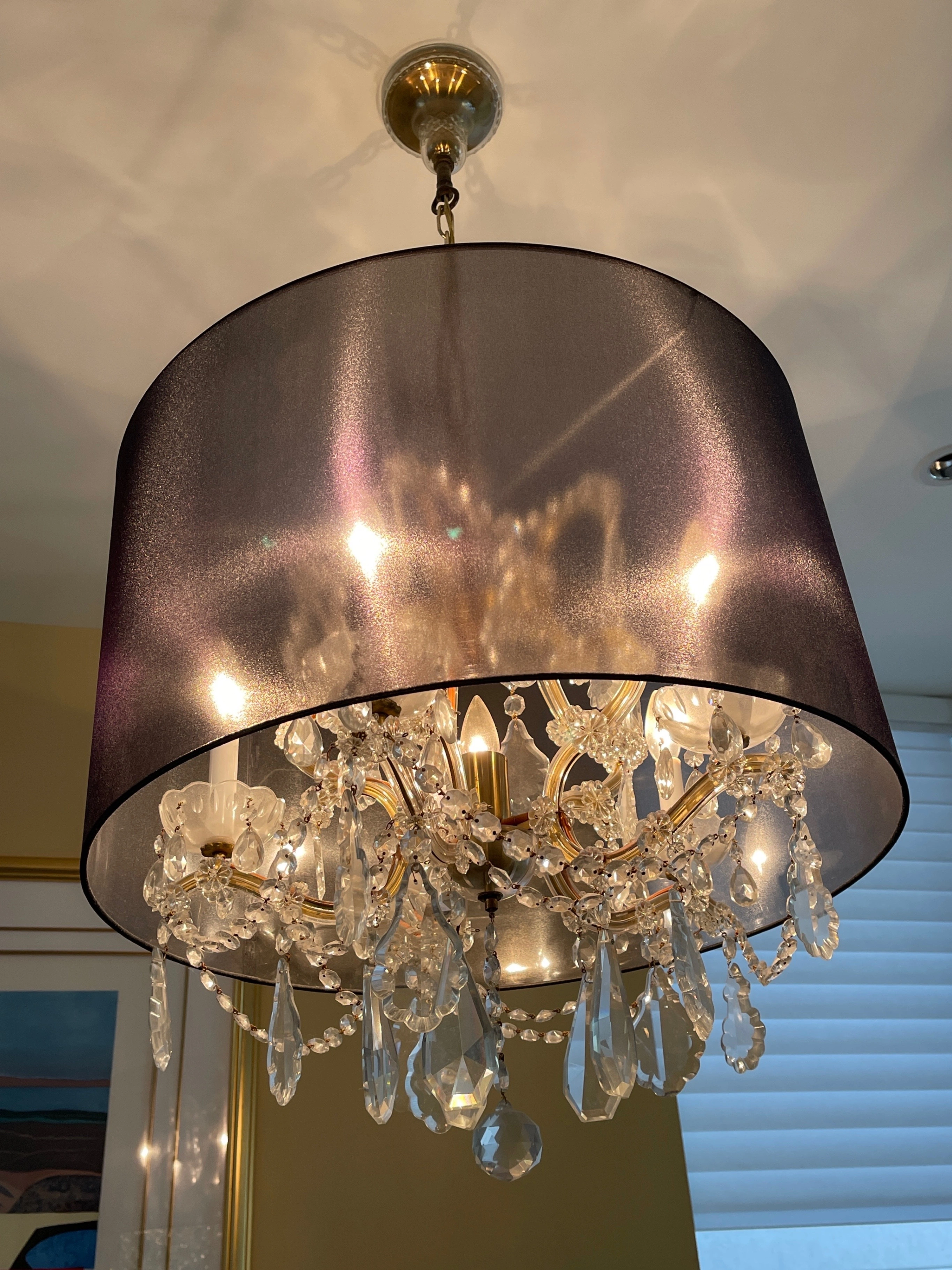 We are redecorating our home, and as a result have this beautiful lighting fixture that we would like to sell. This is a large, vintage "Maria Theresa" crystal chandelier, originally purchased in the 1990's from Residential Lighting on Dupont Street (known among designers and decorators for their collection of restored antique and vintage lighting). We took the chandelier back to them in 2010 to have the shade put on, to modernize the look, but the shade can easily be removed. The crystals are genuine, not plastic. With the shade, the chandelier is approx. 24" wide and 22" tall. This beautiful piece would look great over your dining room table, or in your entrance foyer. Pick up from a pet-free, smoke-free home in the Avenue Road & St. Clair area. Only $300!!