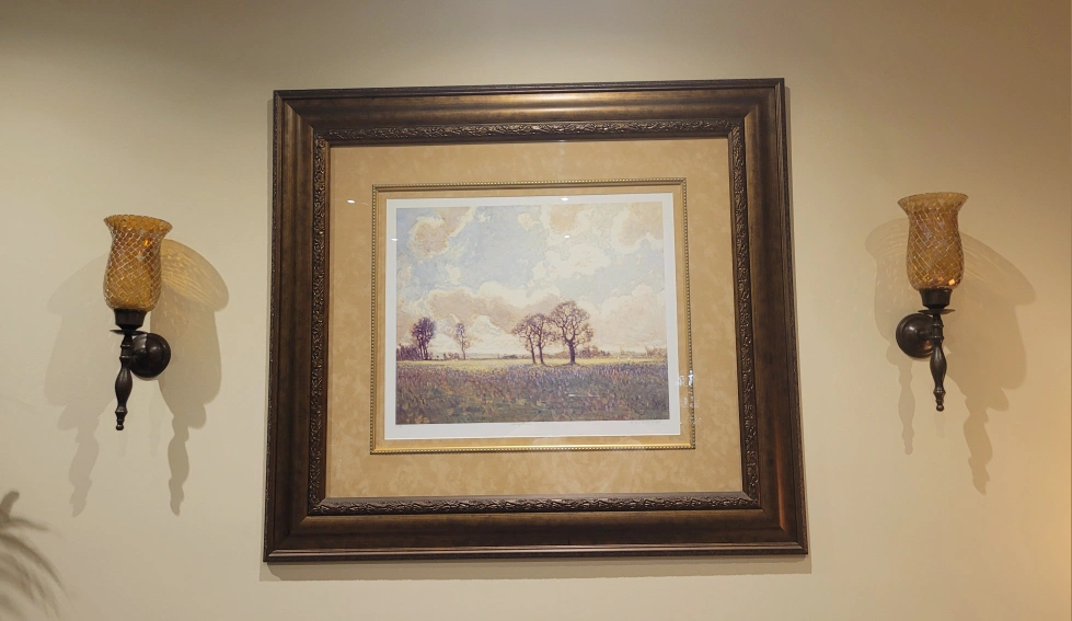 36 " x 40" vintage painting with matching sconces. Beautiful and elegant for your living room!