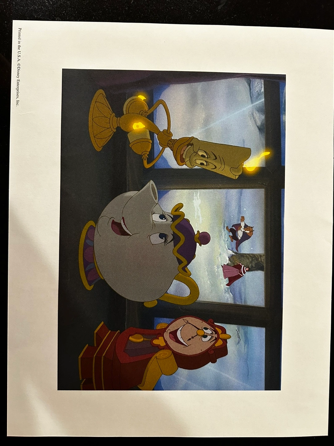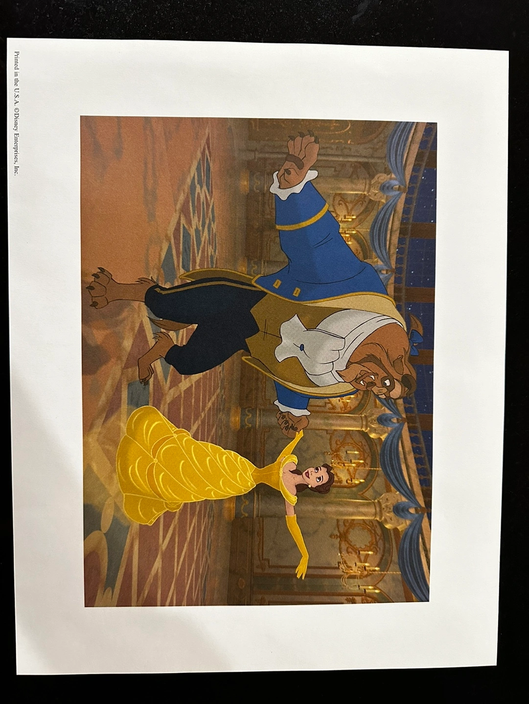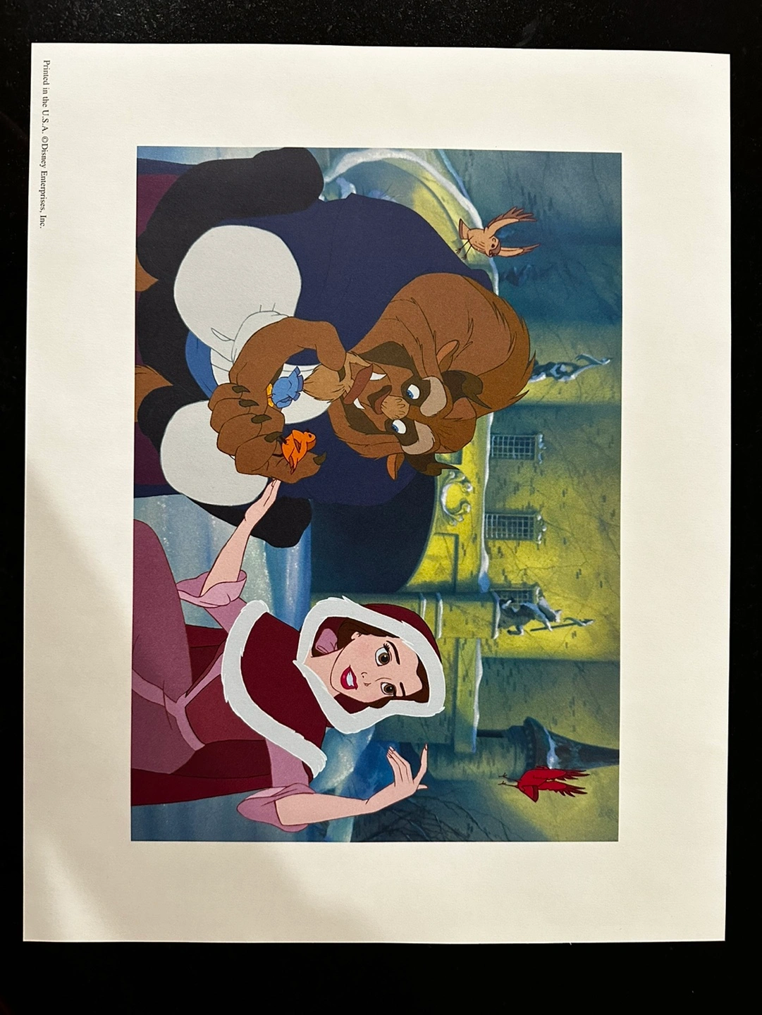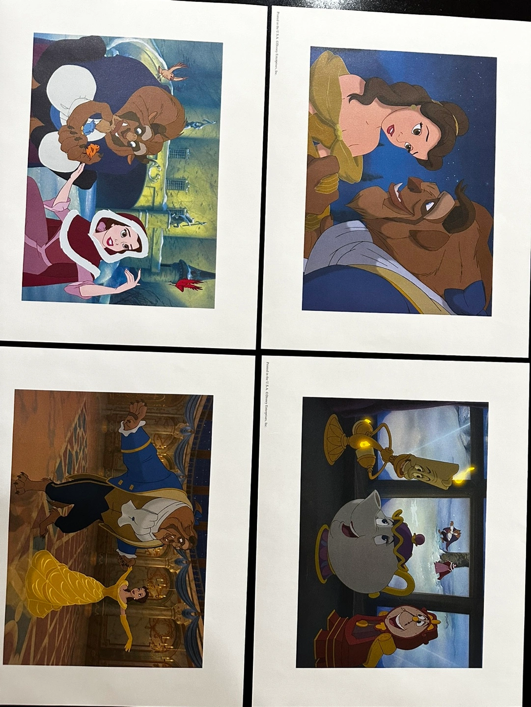 26Set of 4 movie lithograph prints from Beauty and the Beast, features scenes of the movie. Each print is free of rips, tears or folds and ready for framing. Disney Store 2002. Approximately 14” x 11” Non Smoking Home