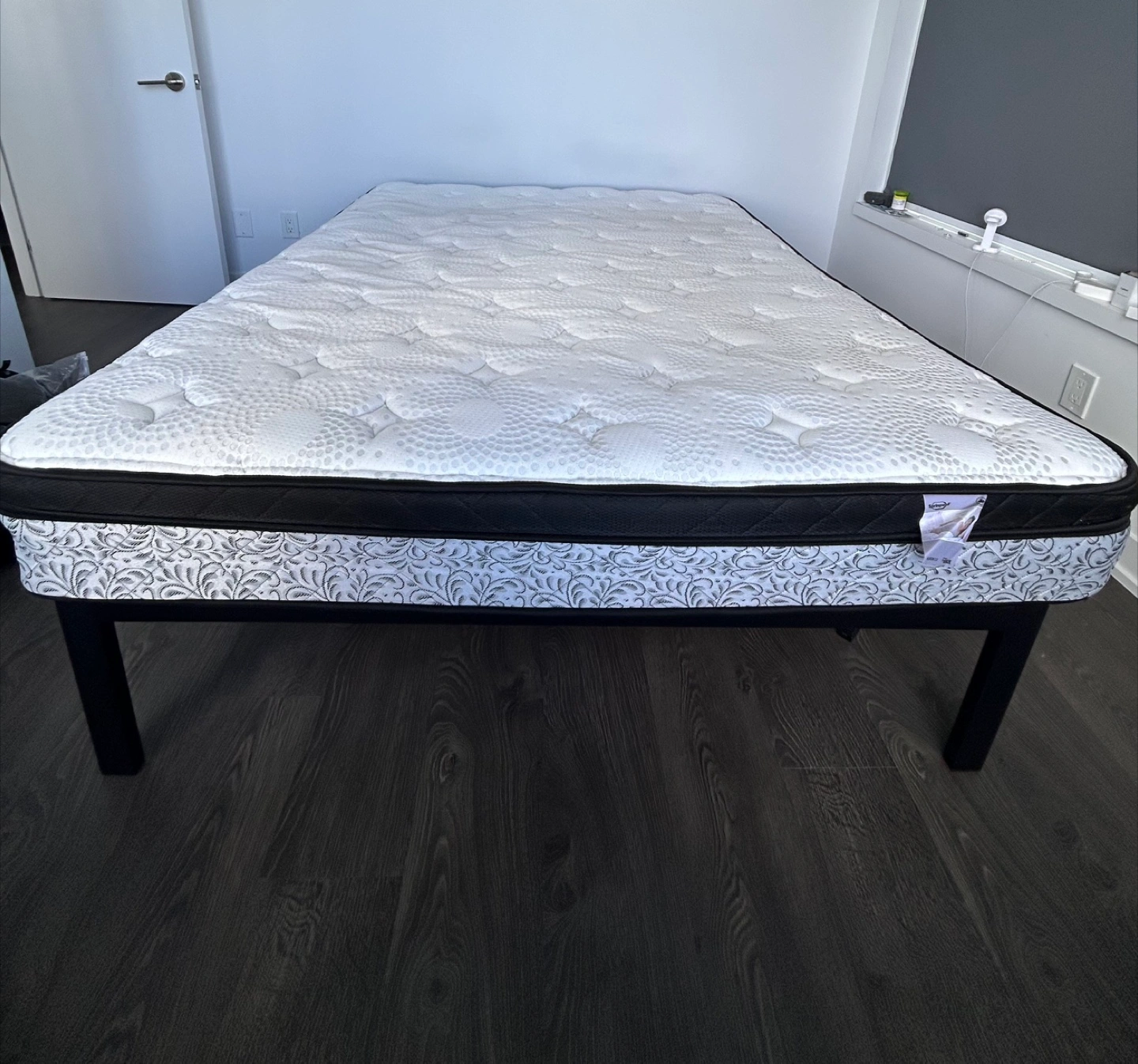 Selling a Beautyrest mattress & black metal bed frame in great condition! It's super comfy and ready for a new home. The design on the side is a nice touch, and it's been well taken care of. Need picked up today.