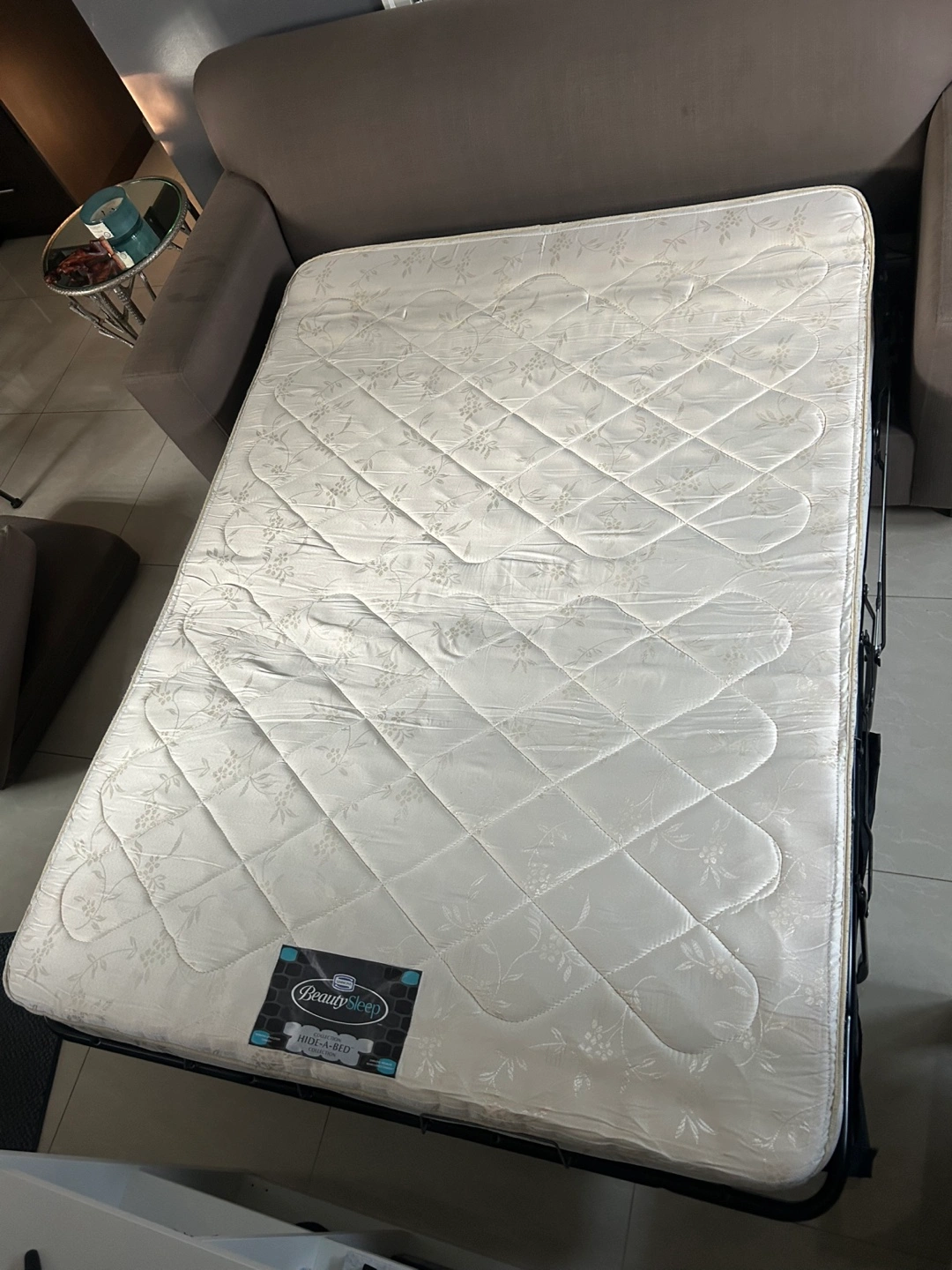 17Selling a BeautySleep Hide-A-Bed sofa bed! It's a great space-saving option for guests or smaller living spaces. The sofa is a neutral colour that would fit into most decor styles. The hide-a-bed feature is easy to use and the mattress is in good condition. Perfect for a condo or apartment!