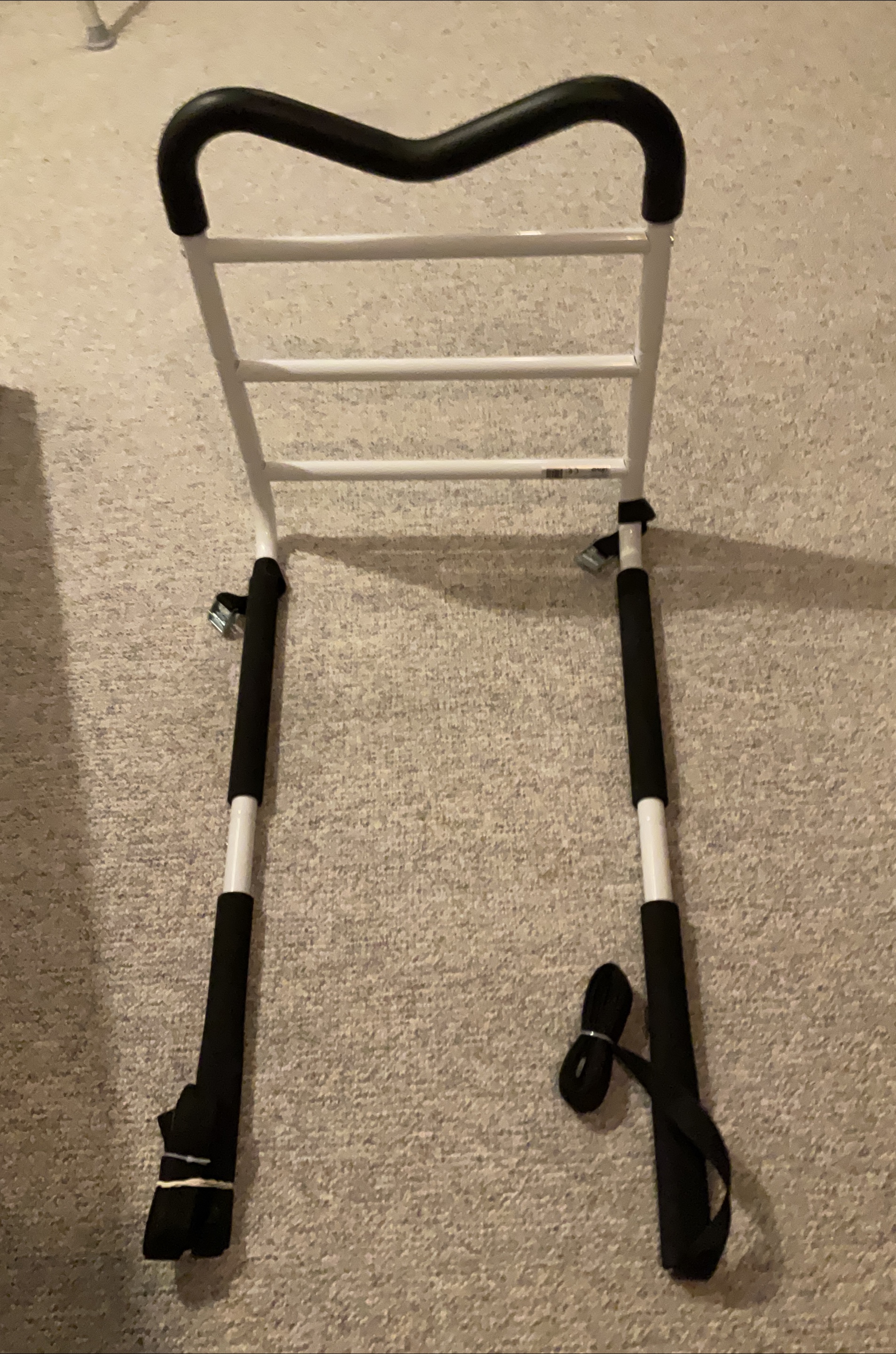 bed assist rail. It's designed to help individuals get in and out of bed more easily. It has a sturdy frame and a comfortable grip. Perfect for anyone needing a little extra support! Never been used