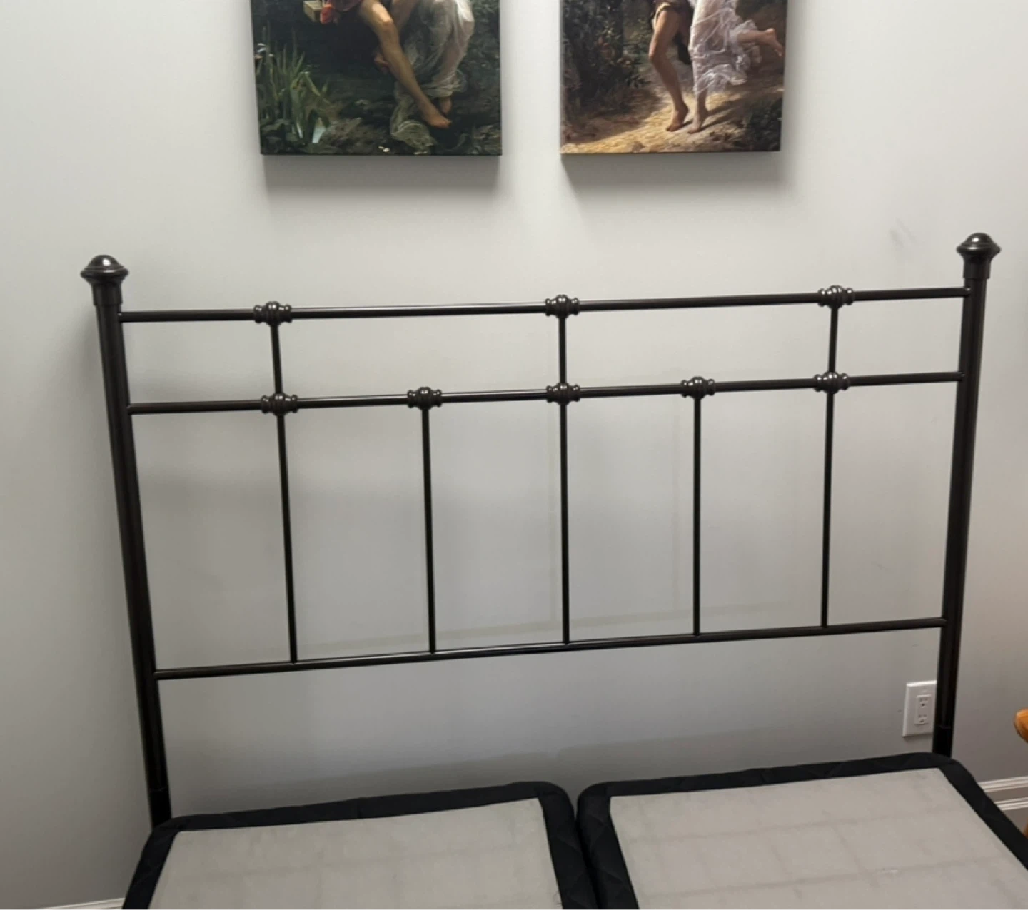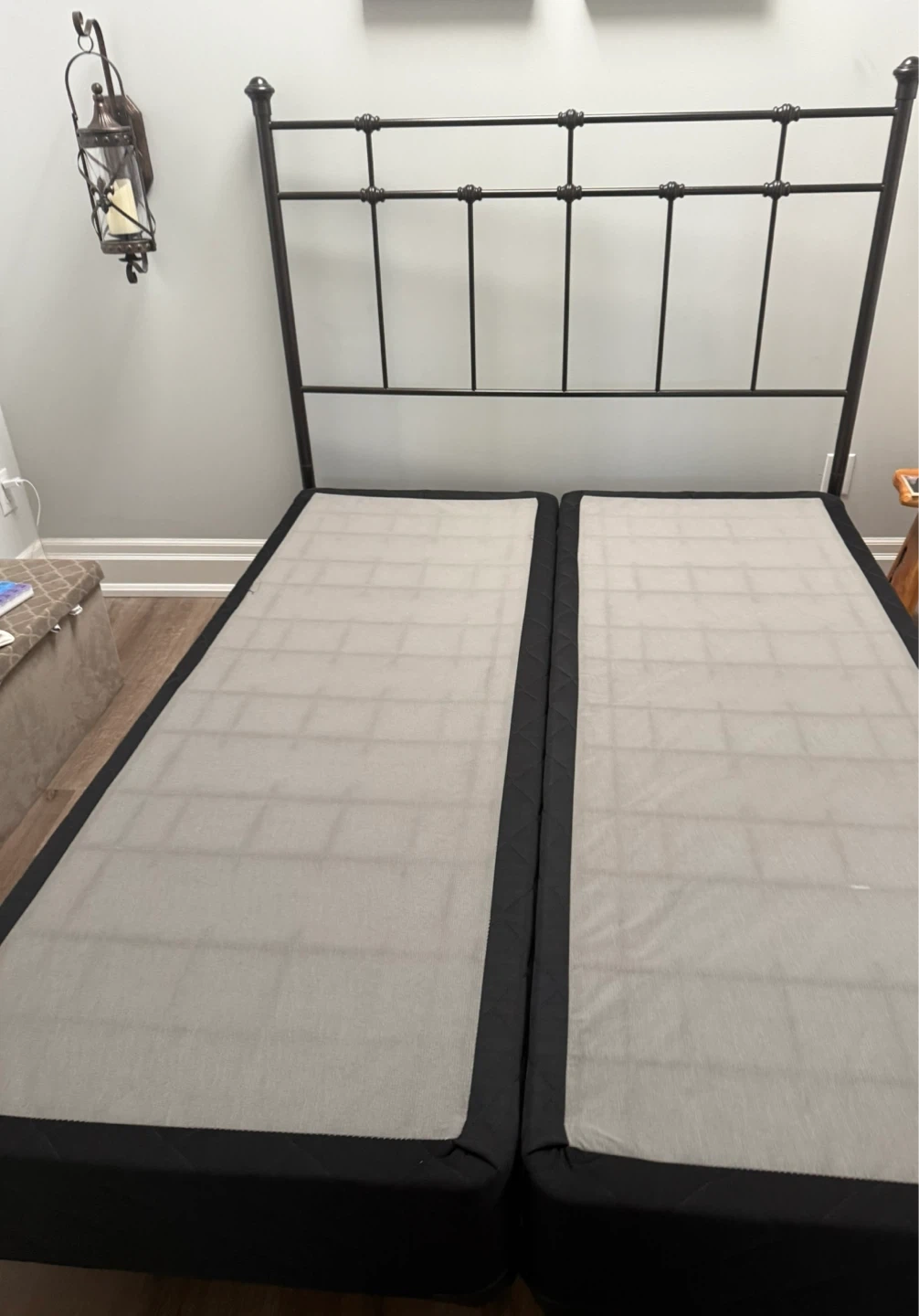44Selling a queen size bed frame and 2 twin box springs. The frame is a dark metal and the box spring is in great condition. Ready for a new home! The box springs originally purchased from sleep country. Asking price 600 for all