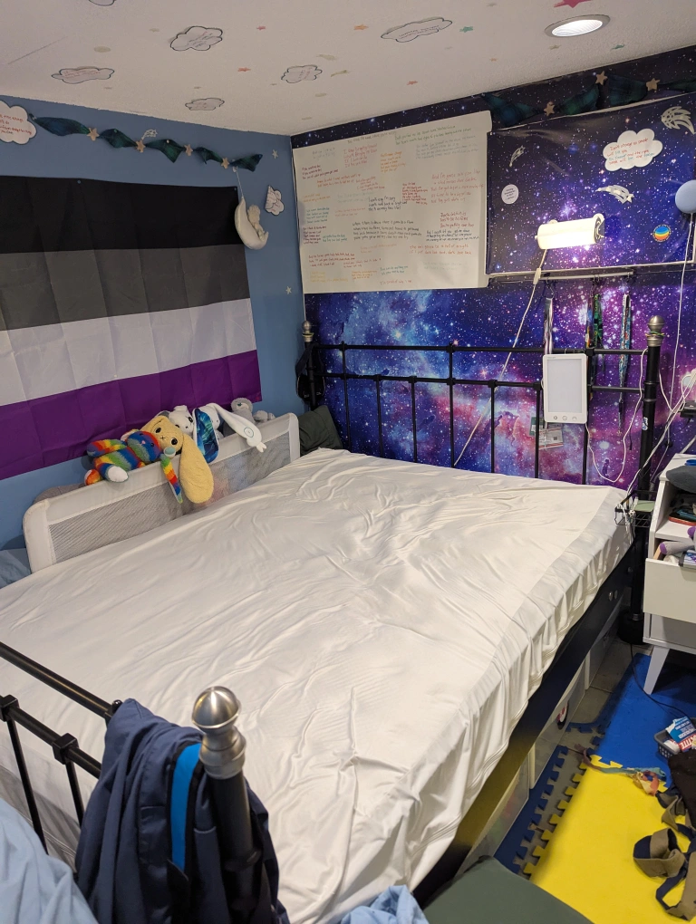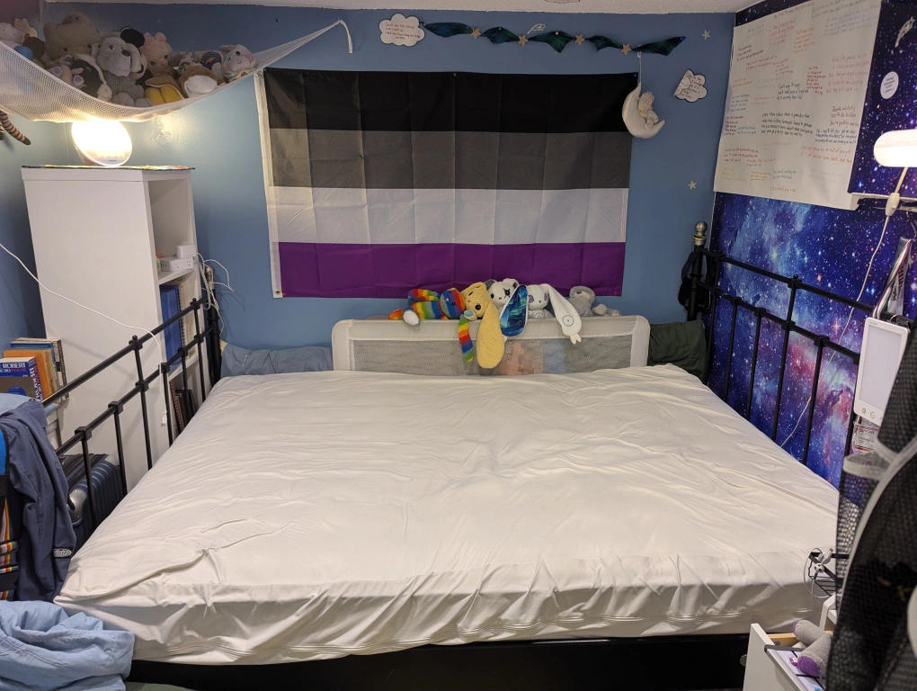 89Selling a Queen bed frame. It's a black metal frame in good condition, other than a smudge of blue paint. wood slats, no box spring needed. option to take the mattress also for free. pillow top mattress has spent its entire lifespan in matress protector, about 10 years old but not showing any sign of degradation