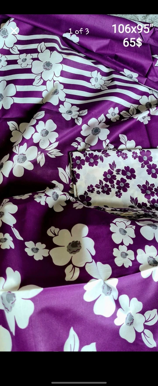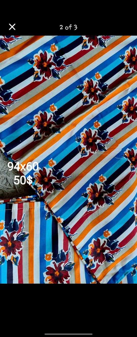 never used , others bought with it had fast colours, purple and brown are for oversized king and blue/orange is for queen, dimensions on image, stitched corners