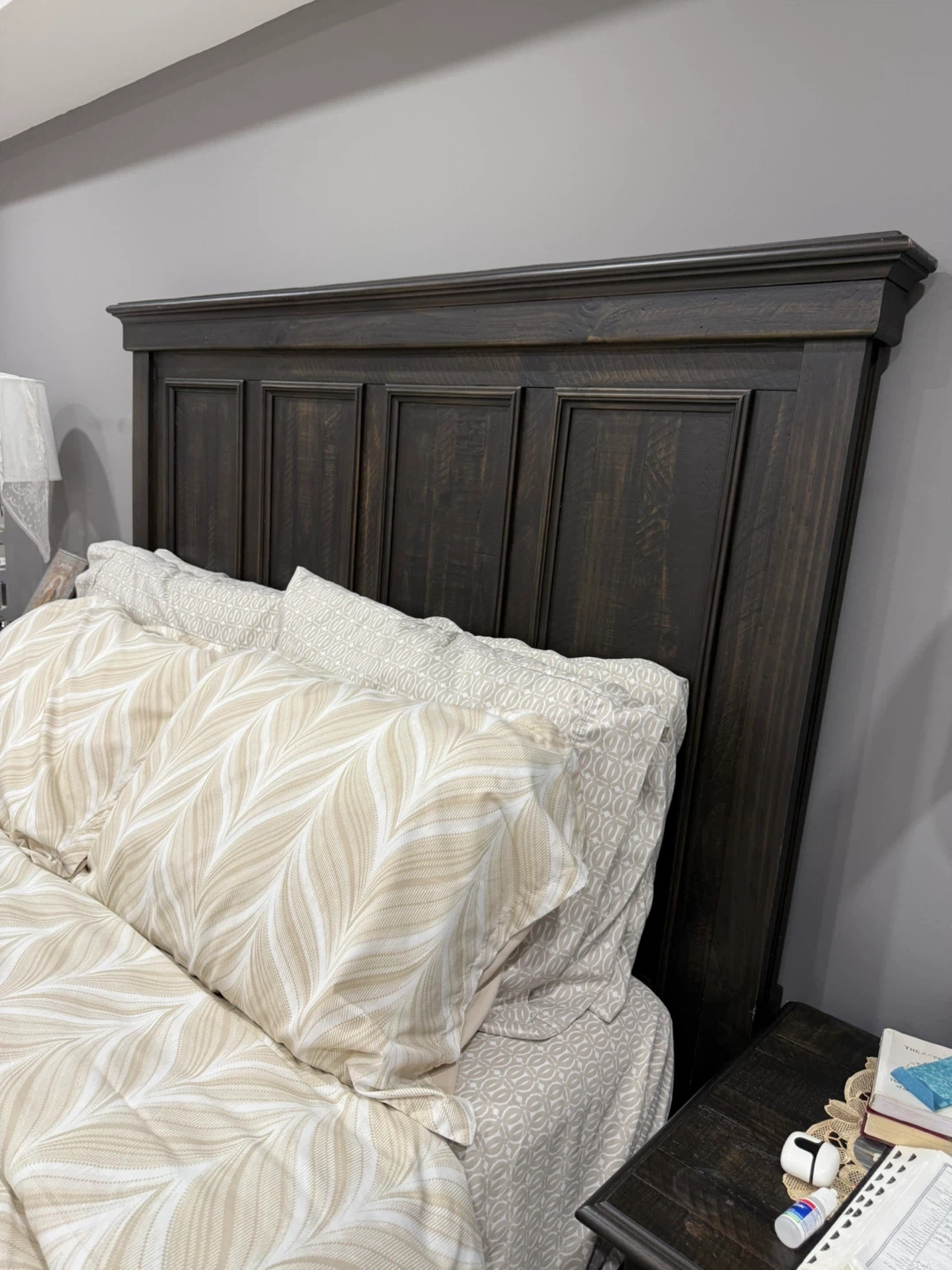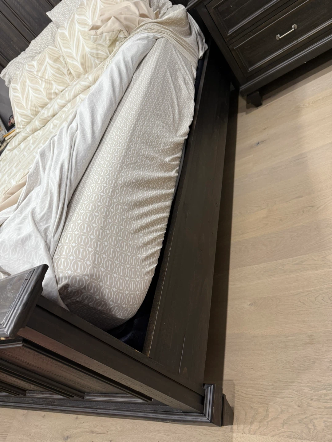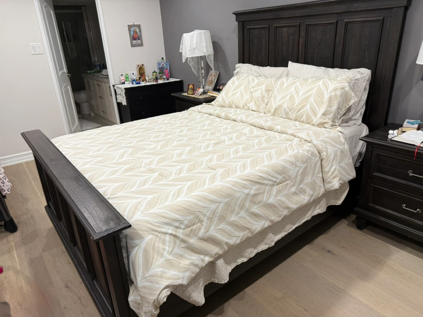 10Selling a bedroom set that includes a dresser, chest of drawers, bed frame, and headboard. All pieces are in excellent condition and have a matching dark wood finish. Perfect for furnishing a bedroom with a cohesive look!