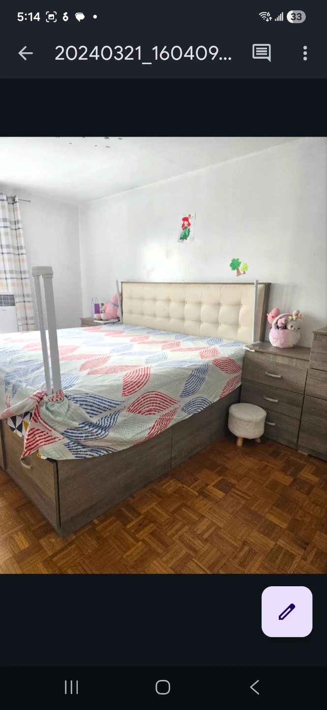 10Selling a bedroom set that includes a king bed, king size mattress , dresser with mirror, and two nightstands and almirah. It's a matching set in a neutral colour, perfect for any room style. The bed has built-in storage underneath, and the dresser has lots of drawer space. Great for adding storage and style to your bedroom!