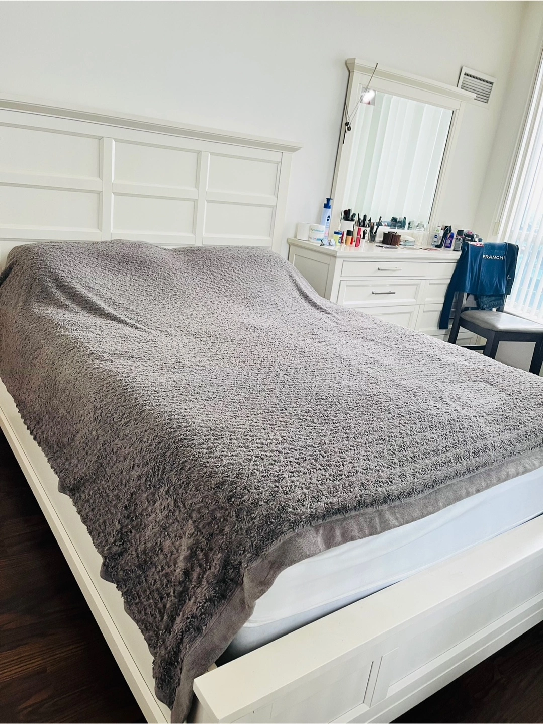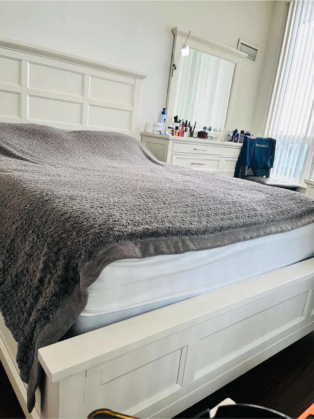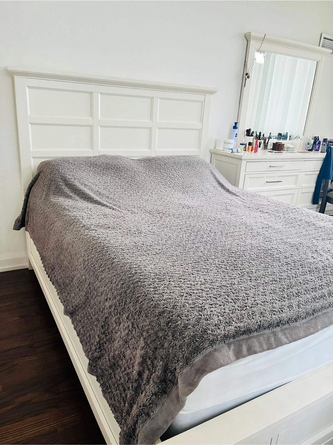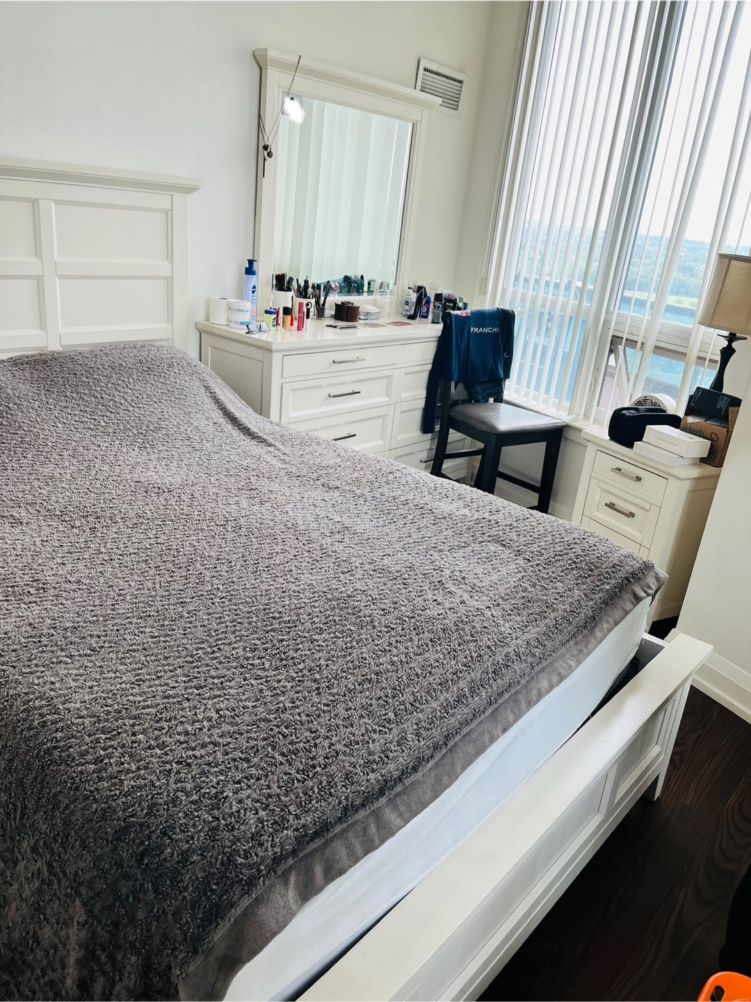 27The Brick Brand, This Bedroom set features a bed frame with a headboard, Dresser with a mirror, and 2 nightstand with 2 Lights. All the furniture is white.You will find the bed to be a relaxing place to rest after a long day.