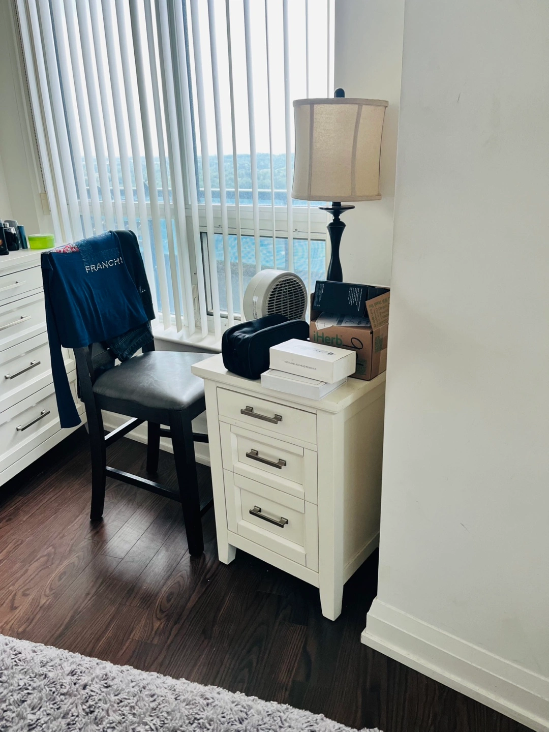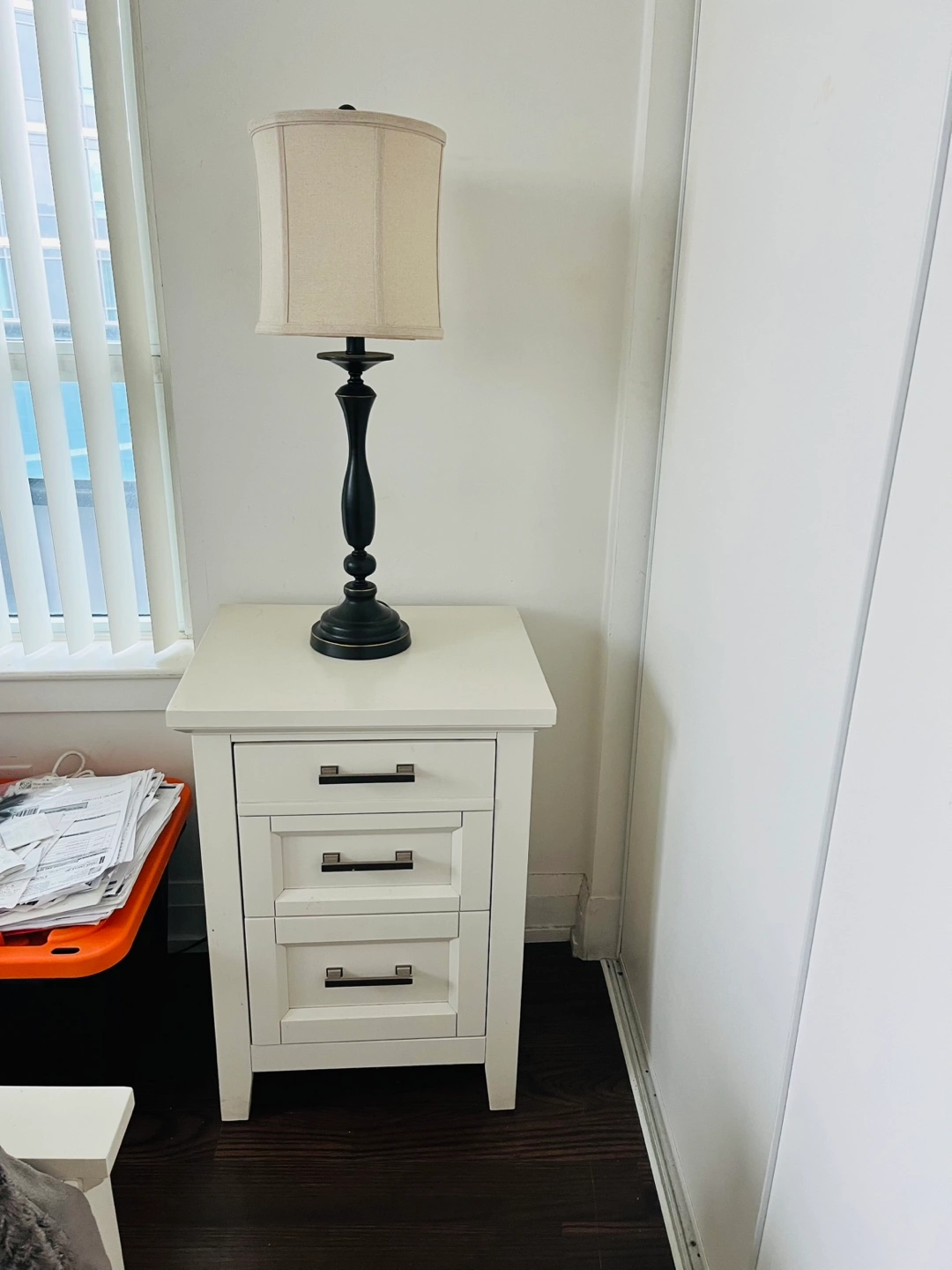 2 White 3-Drawer Nightstand with 2 Lamps