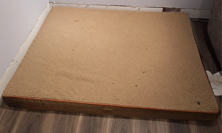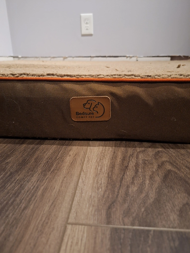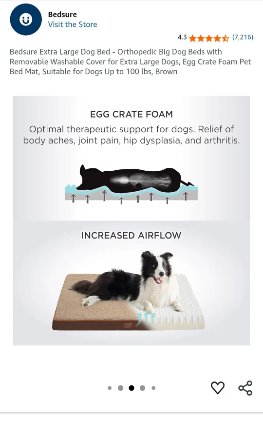 Selling a Bedsure extra large dog bed. It's an orthopedic big dog bed with a removable washable cover. It's suitable for dogs up to 100 lbs. The bed features egg crate foam for optimal therapeutic support for dogs, relieving body aches, joint pain, hip dysplasia, and arthritis. It also has increased airflow and a waterproof inner liner.