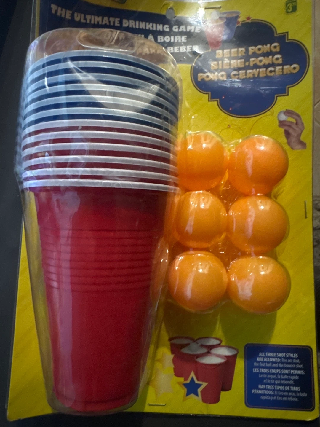 25Get ready for some fun with this beer pong set! It includes the classic red cups and orange ping pong balls. Perfect for parties and game nights