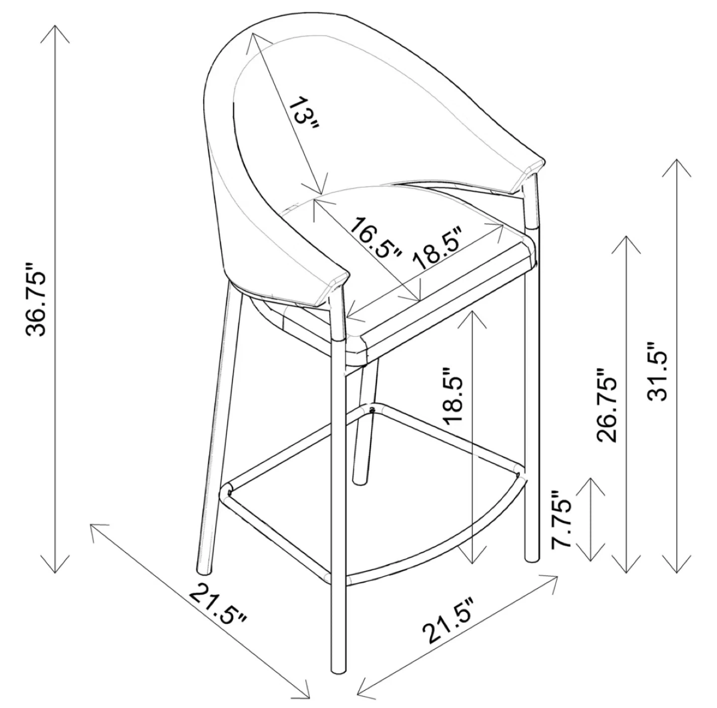 Cream fabric upholstered bar stools with black metal legs and gold accents. Seat height is 26.75". Overall height is 36.75".