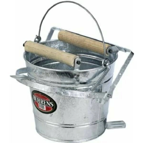24NEW Behrens 412W Mop Wringer Bucket. Galvanized steel mop pail includes wooden rollers for wringing wet mops. Offset bottom keeps pail off ground. Wire reinforced rim. Durable galvanized steel construction. Dimensions: 17-1/2"D x 13-1/2"W x 11"H. Size: 12 Quart. Finish: Galvanized. New in Box.