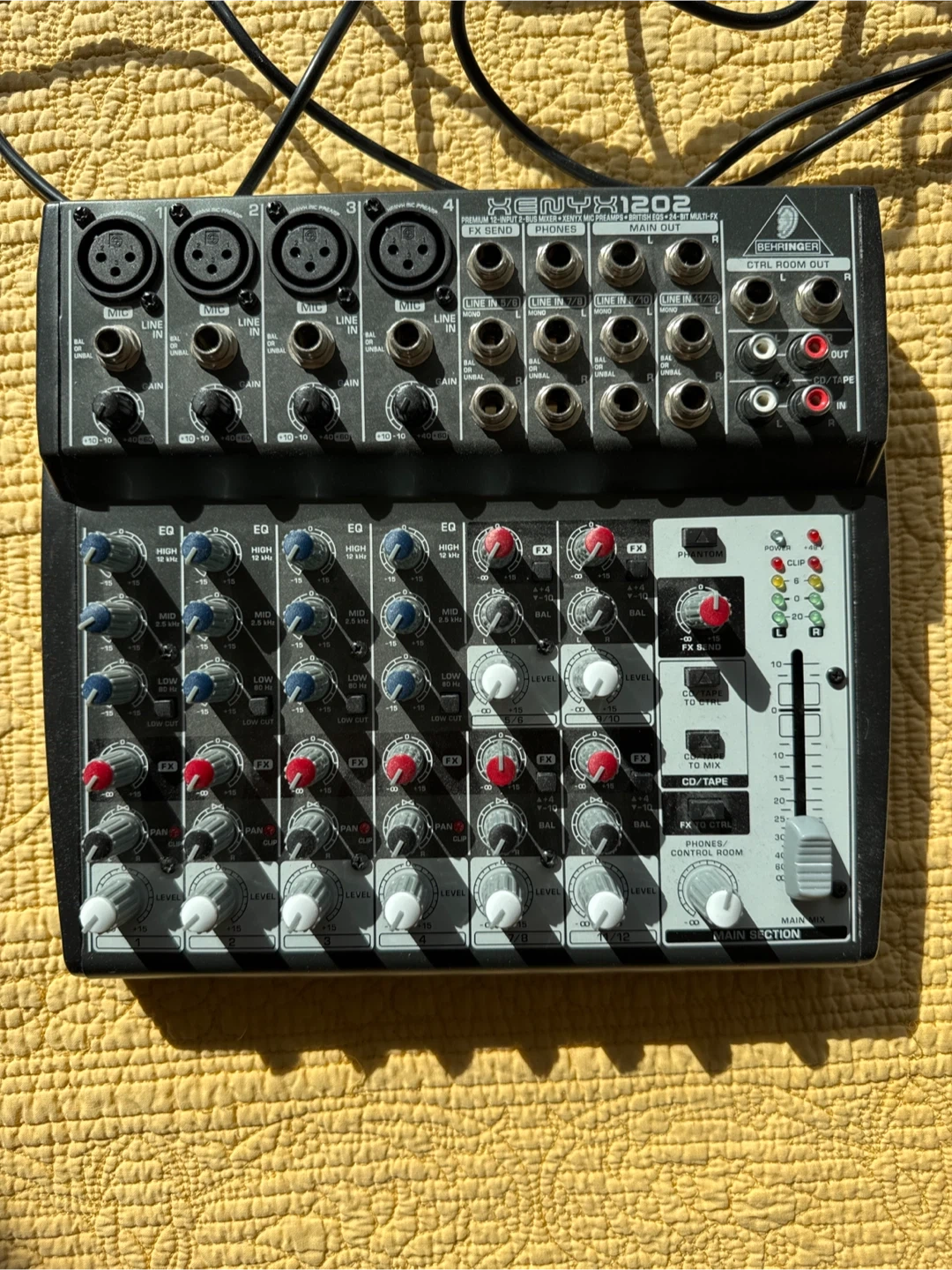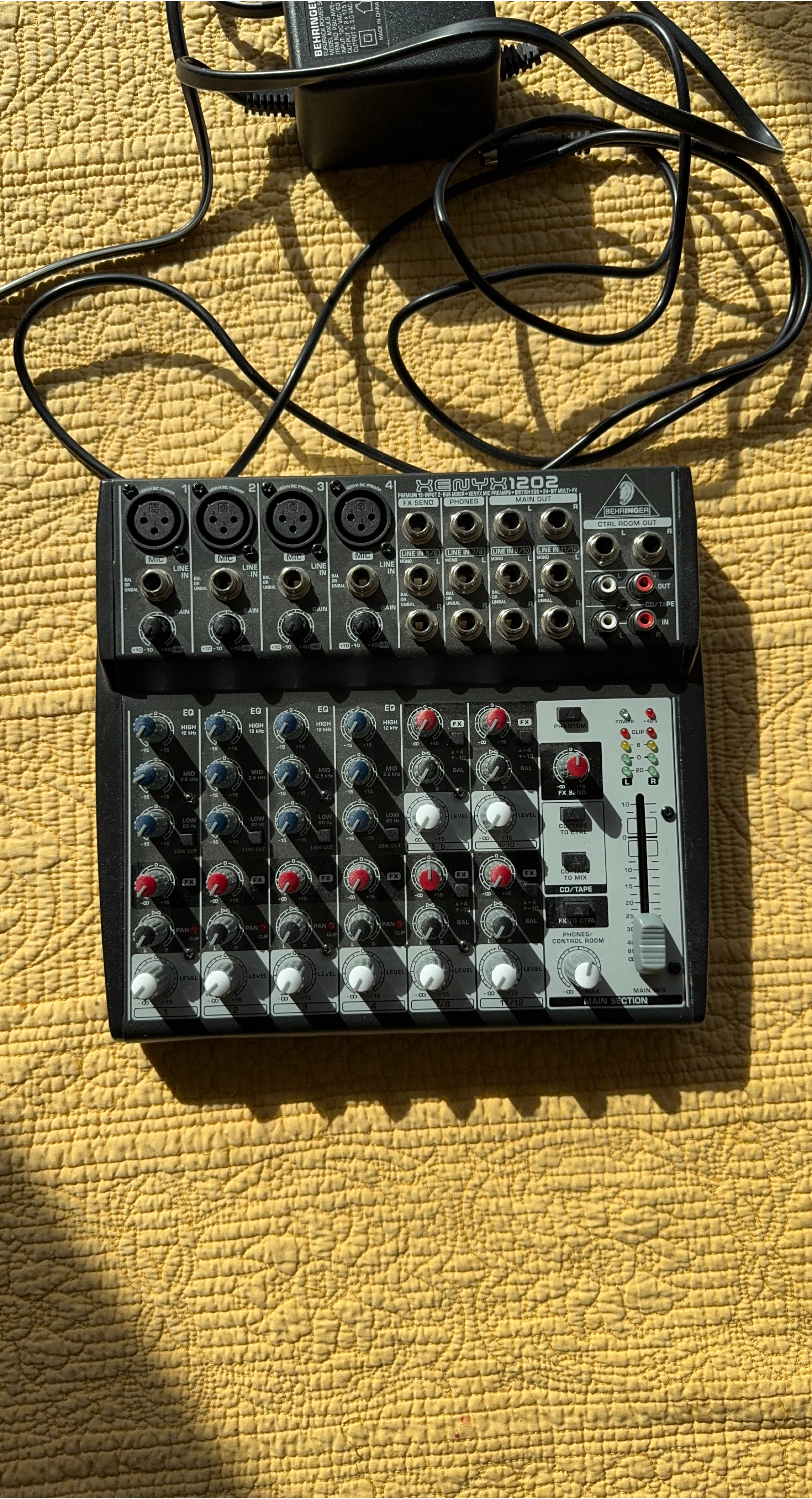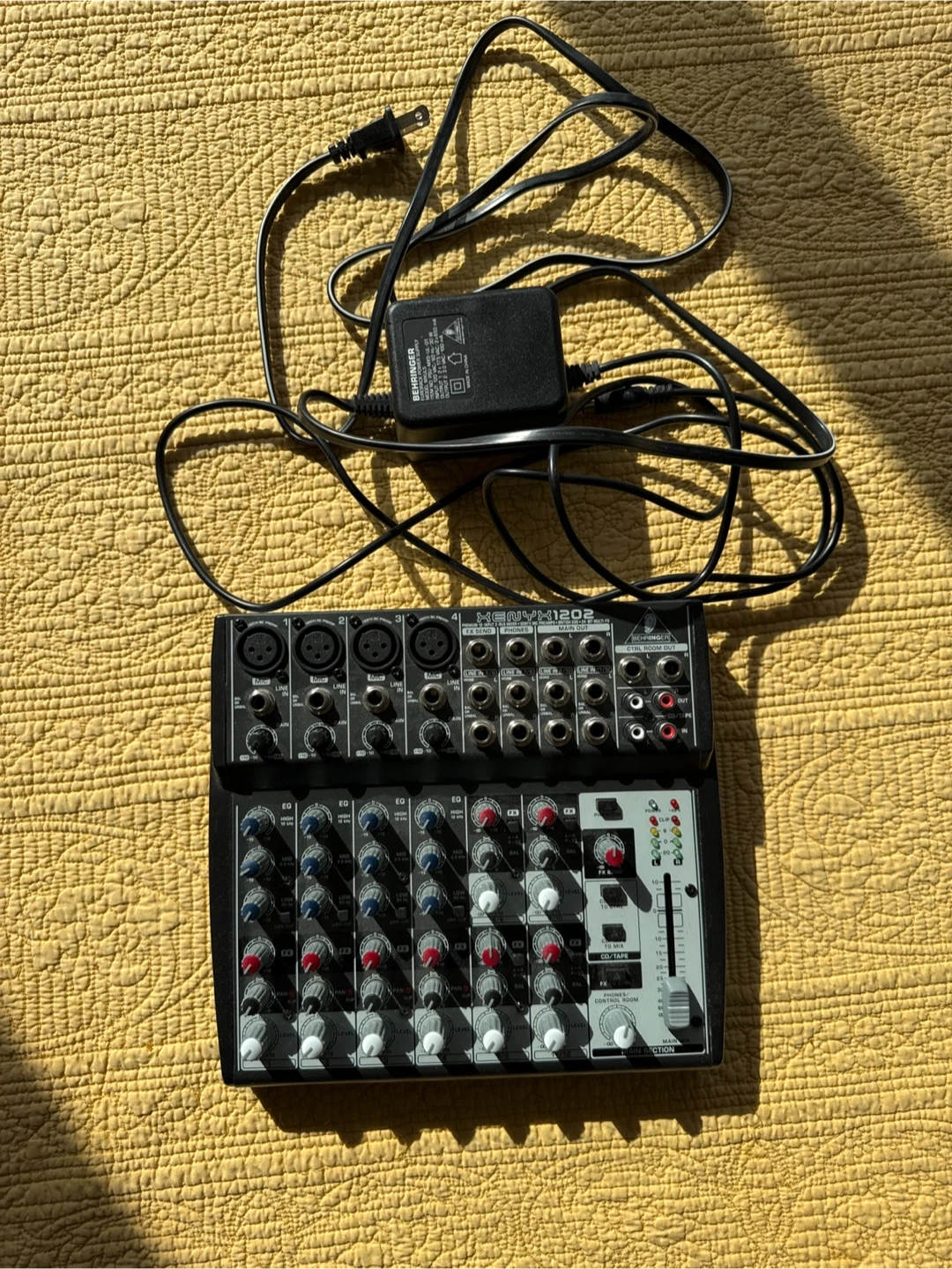 Selling a Behringer Xenyx 1202 mixer. It's in great shape and comes with the power adapter. Perfect for small gigs or home recording!