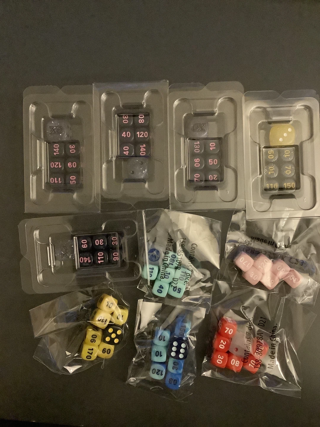 Dice/damage counter sets from various Pokémon elite trainer boxes. 10 total available.
