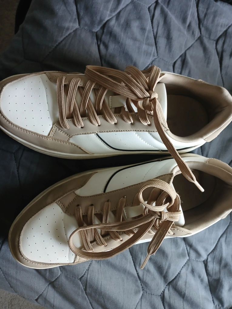 25Selling these beige and white sneakers. They're in good condition and ready for a new home!