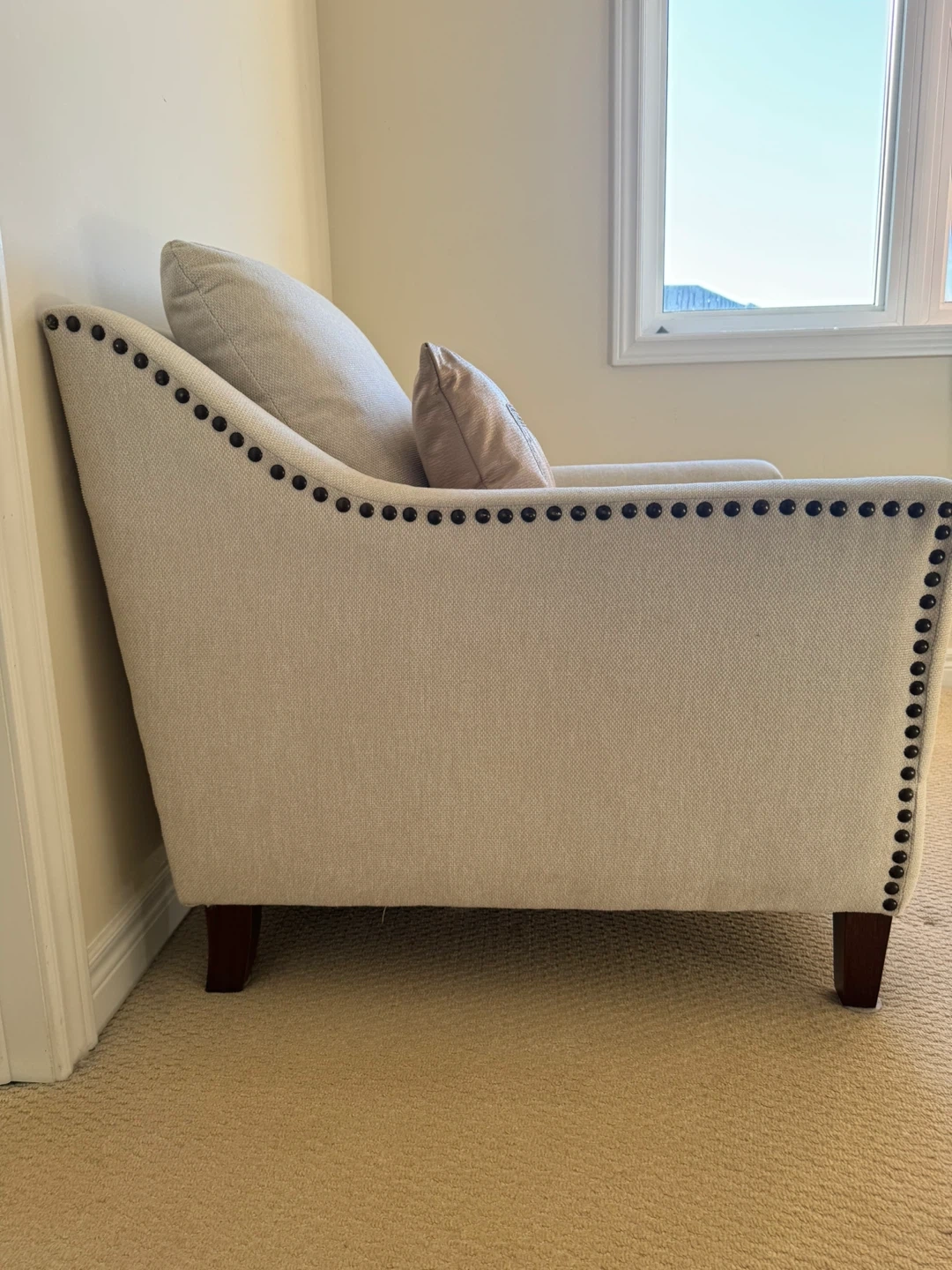 25Selling a comfy beige armchair! It's in great shape and would look lovely in any living room or bedroom. Perfect for curling up with a good book or just relaxing after a long day. The neutral colour makes it easy to match with any decor!