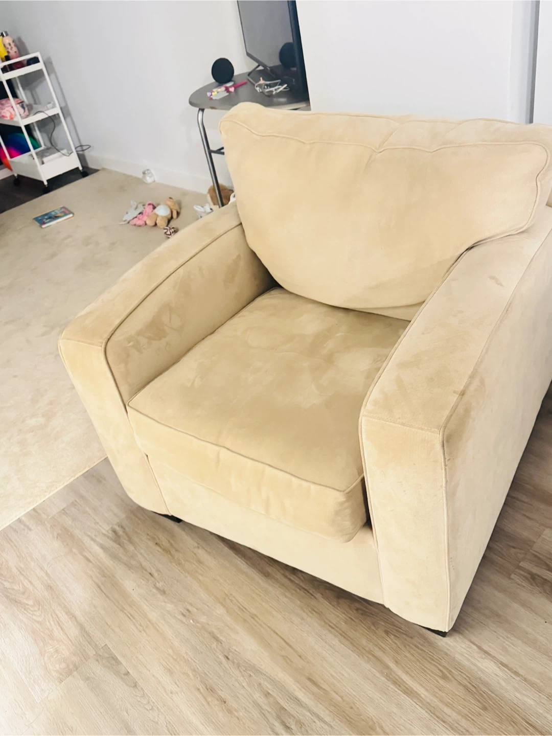 Accent Chair with Gold Metal Legs & Thick Padding, Cream CA$110