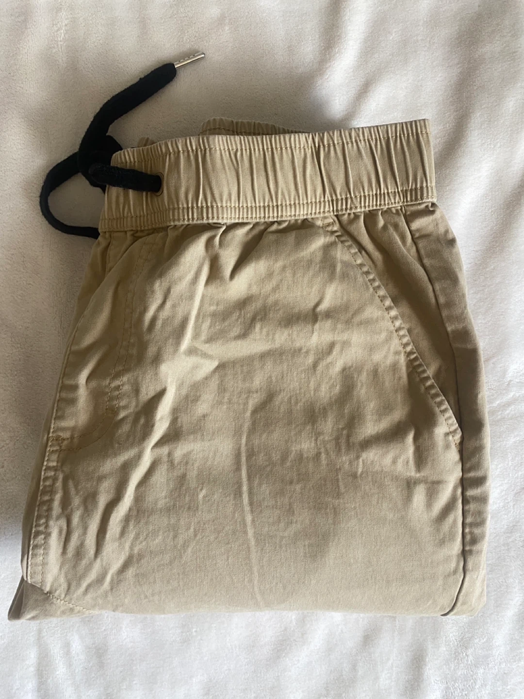 Selling a pair of Italymorn jogger pants in size medium. They're a nice beige colour and made of 98% cotton and 2% spandex for a comfy fit!