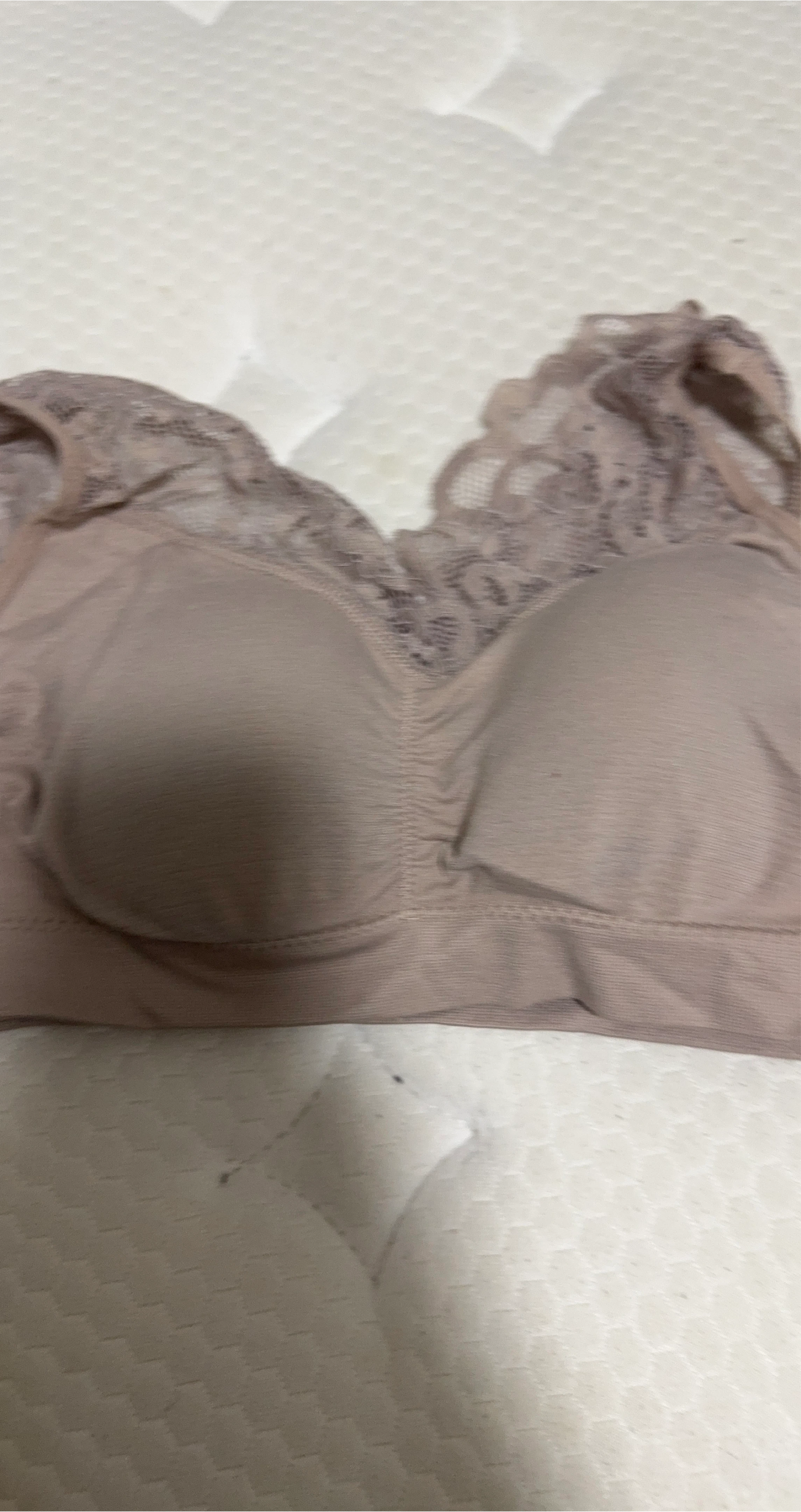 Selling a beige bra with lace detailing. It's in good condition and ready for a new home, never be worn .