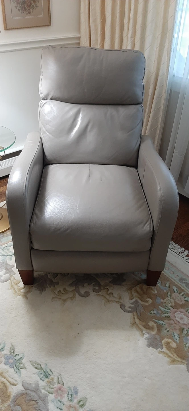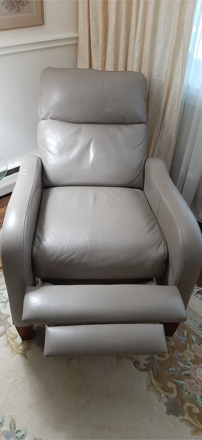 5Selling a comfortable beige leather recliner chair. It's in great shape and perfect for relaxing after a long day. The leather is soft and the reclining mechanism works smoothly. It would be a great addition to any living room or den! Price is for two