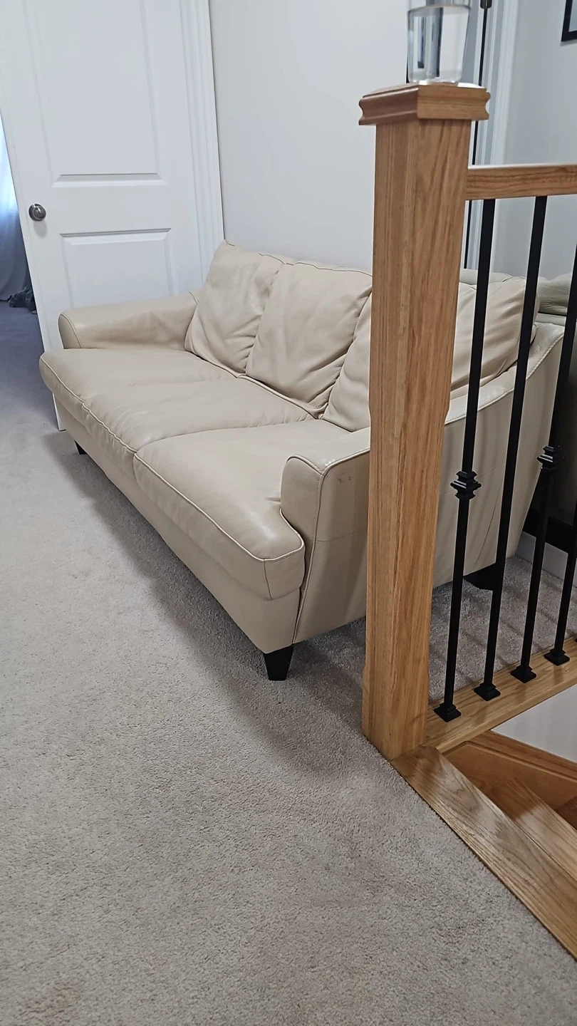 60Looking to sell this comfy beige leather sofa! It's in great condition and would look fantastic in any living room. It's a three-seater, perfect for relaxing with family or friends. The leather is soft and supple, making it a cozy spot to unwind after a long day