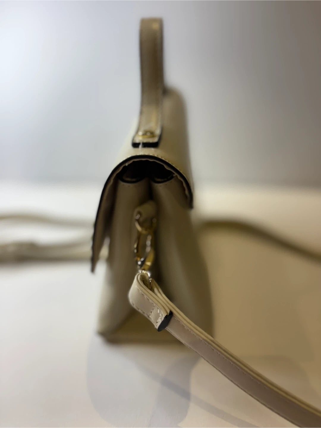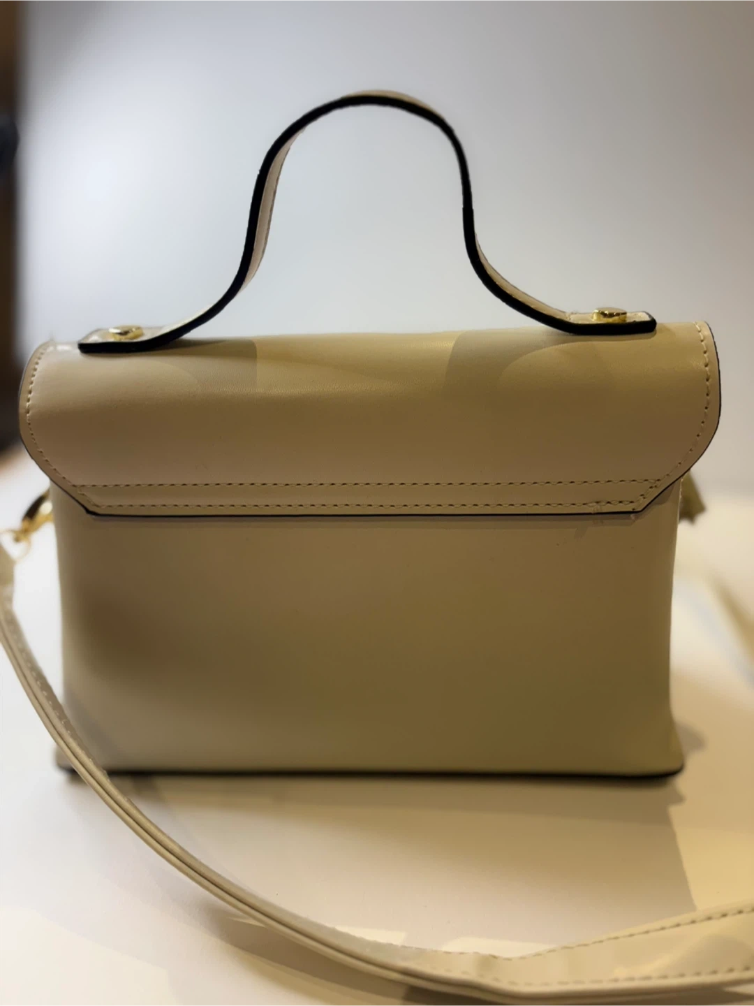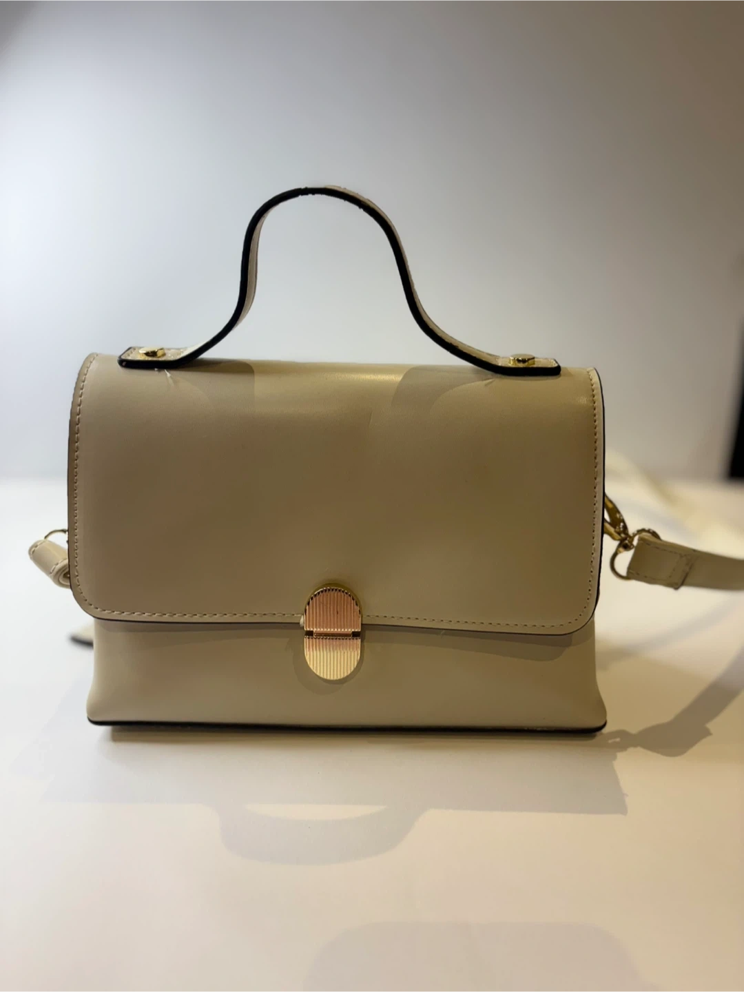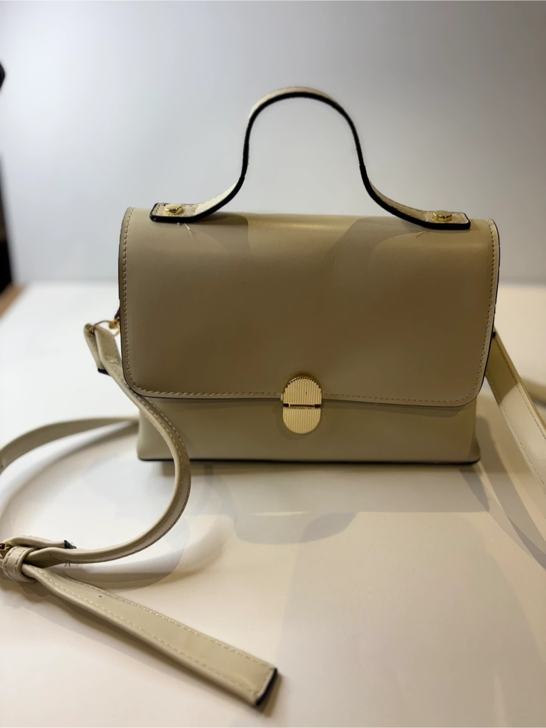10Selling a stylish beige leather top handle bag! It's in great condition and perfect for everyday use or a night out. The neutral colour makes it easy to match with any outfit. It features a detachable shoulder strap for added versatility. A very cute purse!
