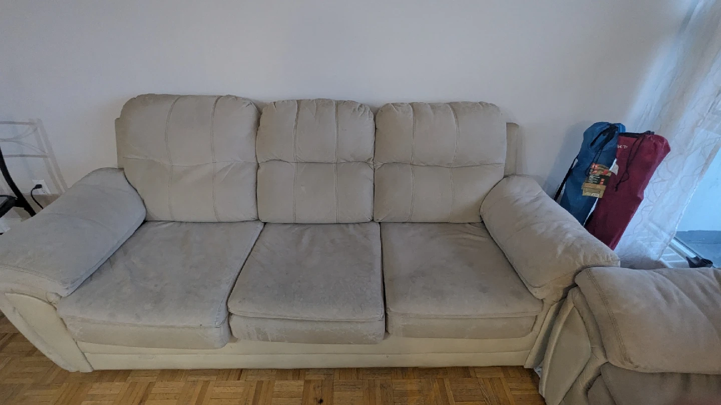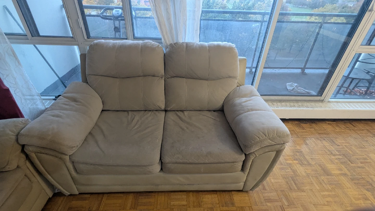 Selling a beige loveseat and sofa set. It's in good condition and would be great for a living room or den. If you're interested, send me a message! Pickup only from M2J