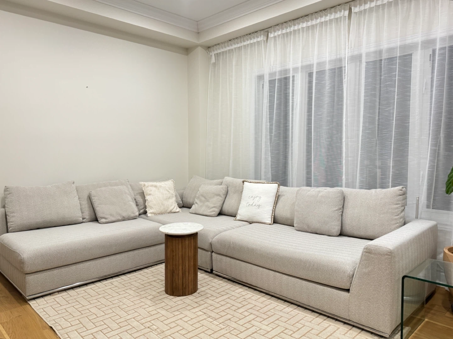 Modern Sectional Sofa – Excellent Condition!Barely Used! Selling my beautiful sectional sofa for $1250 (originally paid $2600 incl. tax). It’s in excellent condition, clean, and from a smoke-free, pet-free home. The cushions are still firm and supportive, with no stains, sagging, or damage. The neutral tone fits perfectly with any décor — modern, cozy, or minimalist. Very comfortable for lounging, movie nights, or hosting guests. Pickup Only.
