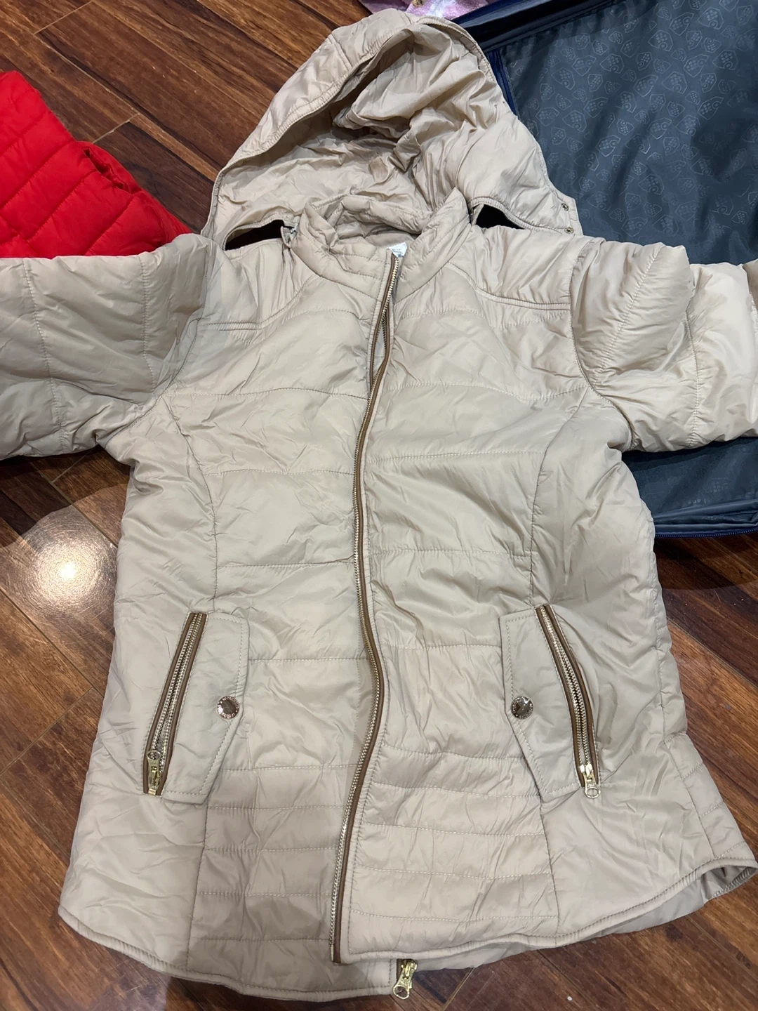 10Selling a beige puffer jacket. It's in great condition and ready to keep you warm!