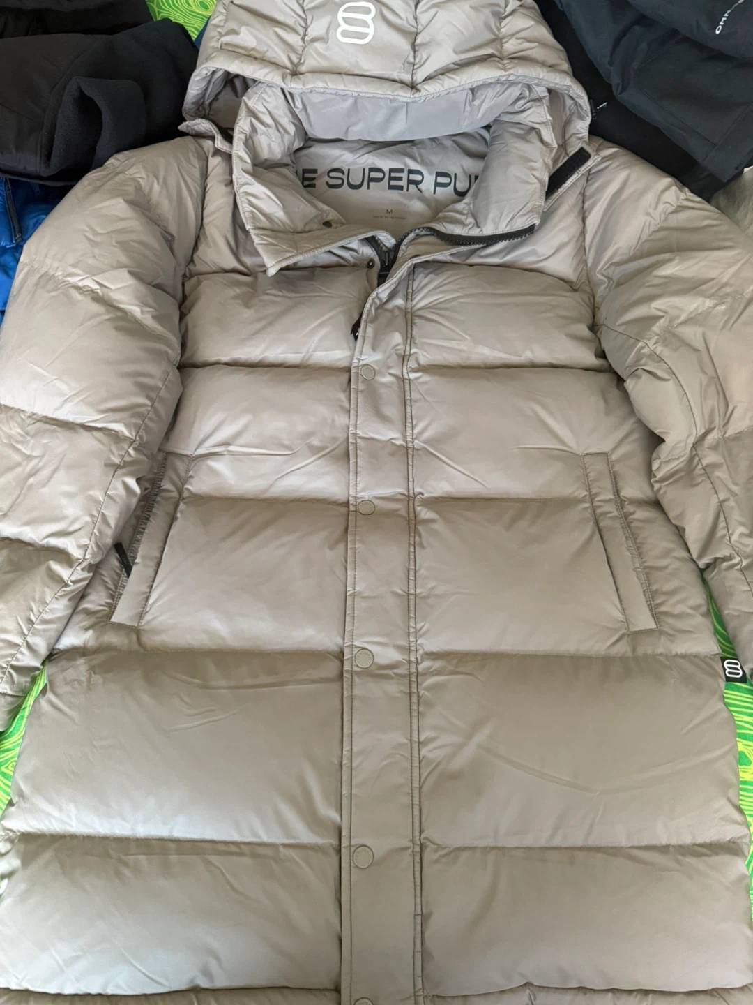 Selling a super puff jacket from Aritzia in beige. It's a size M and in great condition! Worn only once. Perfect for staying warm during the colder months. The material is lightweight and comfortable.