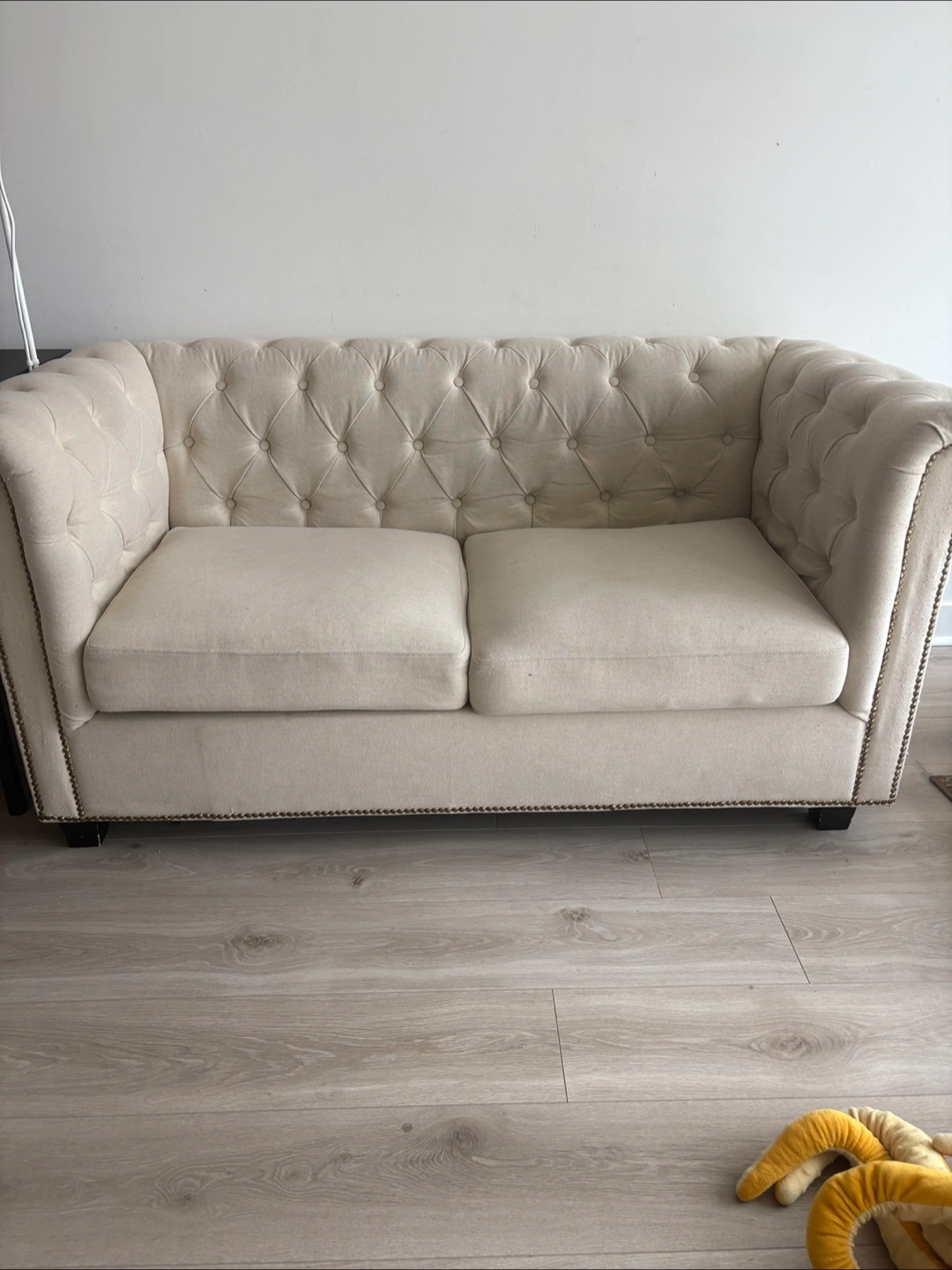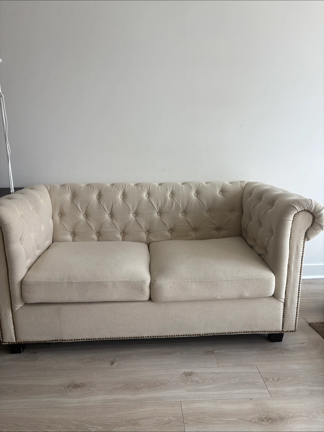 48Selling a lovely beige tufted loveseat. It's in great condition and would look great in any living room or den. The neutral colour makes it easy to match with existing decor. It's a comfortable and stylish piece of furniture! Moving sale