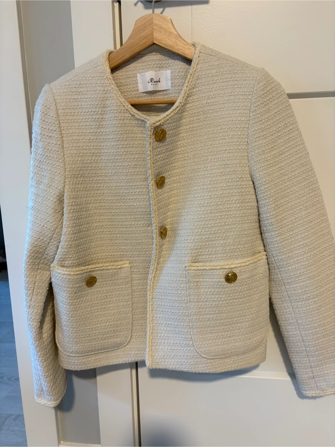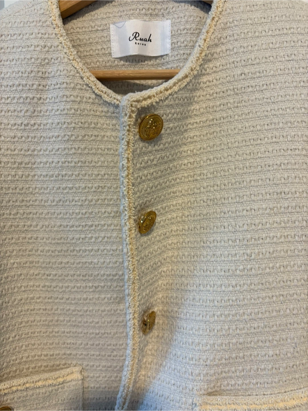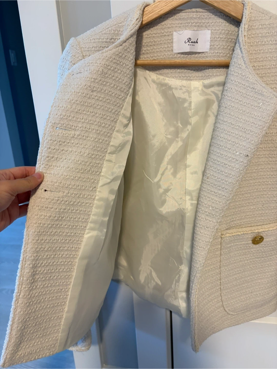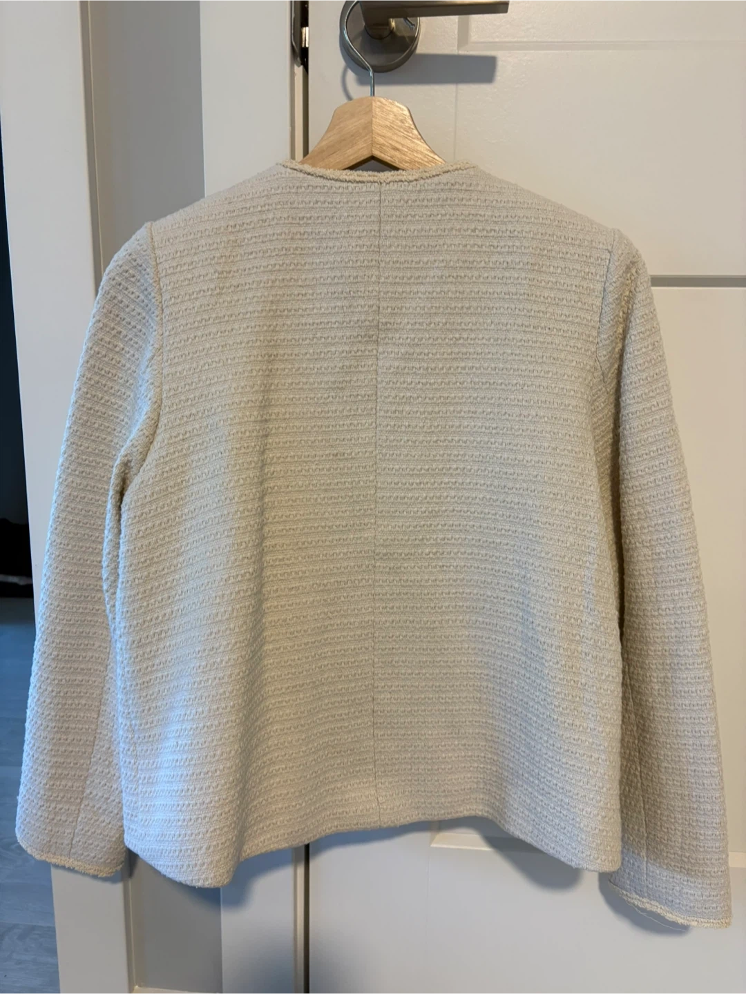 65Selling a neat tweed jacket. Worn fewer than 5 times, so it’s almost new. Made in Korea. Fits up to size 8, but best suited for a relaxed fit on size 6.