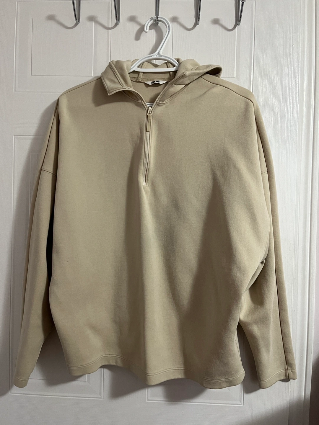 18Cream-coloured Uniqlo half-zip hoodie. Long sleeves, relaxed fit. Good condition.