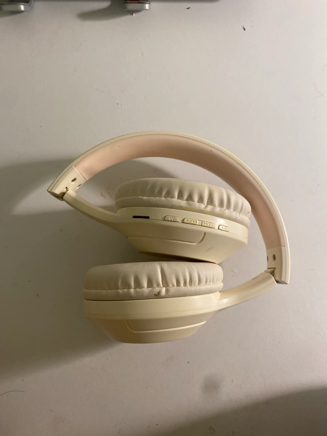 15Selling a pair of beige wireless headphones! They're in good condition and ready for a new home
