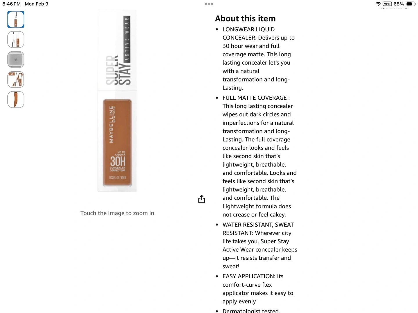 This is the Maybelline Super Stay 30H Liquid Concealer. It offers full matte coverage and is water resistant, sweat resistant. It comes with a comfort-curve flex applicator for easy application. This concealer is dermatologist tested. each. Great addition to anyone’s makeup collection.