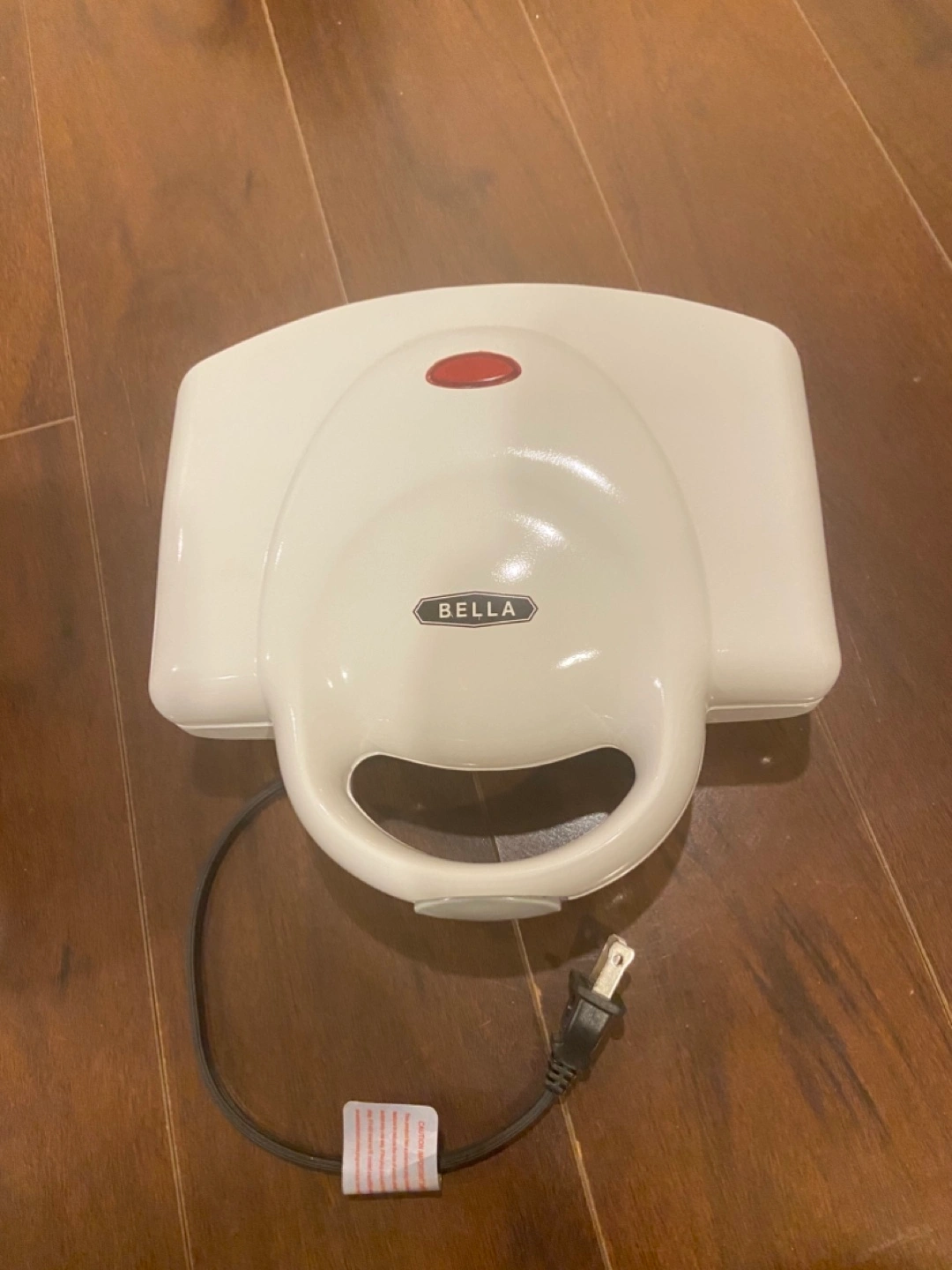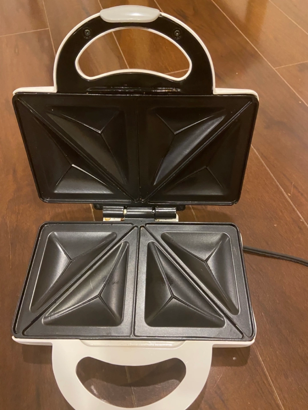 18White sandwich maker. Makes two triangle sandwiches. Compact design. Easy to clean. Great for quick meals.
