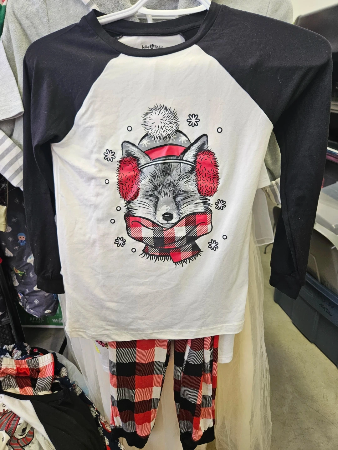 940This adorable Bella & Birdie pajama set is in excellent condition! The set includes a long-sleeved top with a cute animal design and matching plaid bottoms. The top is made of 95% polyester and 5% spandex, making it super comfy for a good night's sleep. Size S/P (7-8) We have a variety of sets from 6M up Sfpf Oshawa Harmony Road South at 401