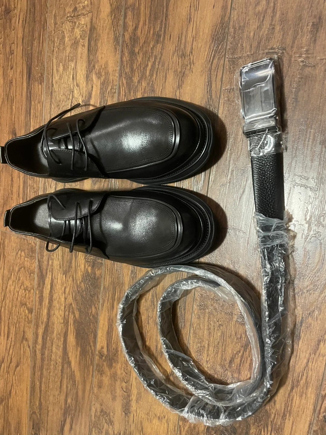 85Selling a pair of Belle black leather dress shoes. They are in great condition and the size is 9-9.5 (270). Comes with a belt.