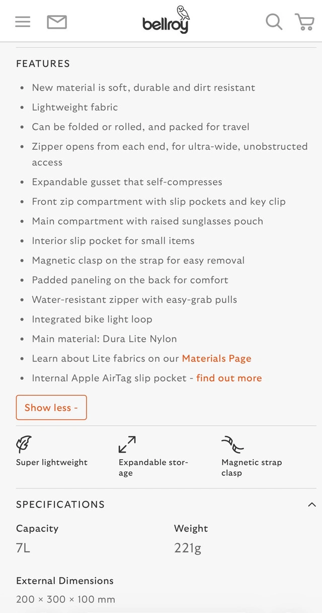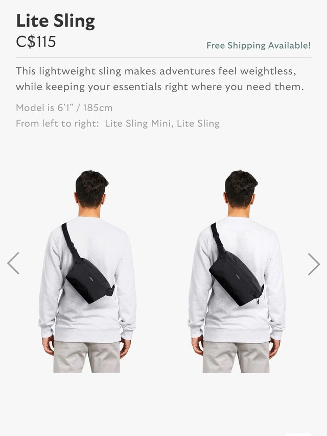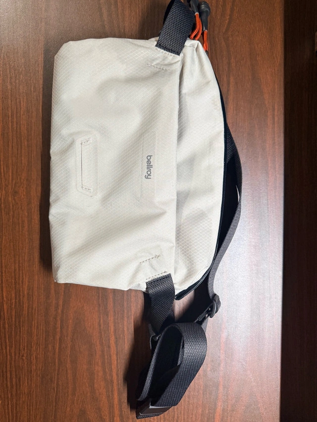 23Almost brand new Bellroy Lite Sling, used for a month. Bought for $130 with shipping and taxes. FEATURES New material is soft, durable and dirt resistant. Lightweight fabric can be folded or rolled, and packed for travel. Zipper opens from each end for ultra-wide access. Expandable gusset that self-compresses. Front zip compartment with slip pockets and key clip. Main compartment with raised sunglasses pouch. Interior slip pocket for small items. Magnetic clasp on the strap for easy removal. Padded paneling on the back for comfort. Water-resistant zipper with easy-grab pulls. Integrated bike light loop. Main material: Dura Lite Nylon. Internal Apple AirTag slip pocket. West End Area For Sale By: Owner