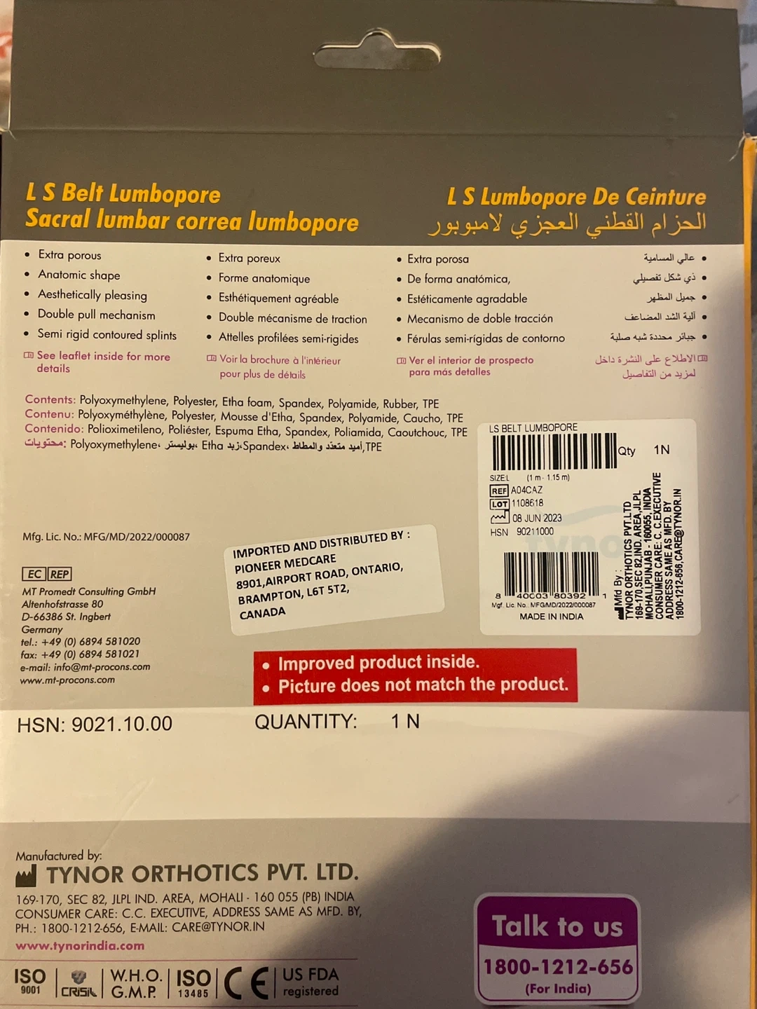 85I'm selling a Tynor LS Belt Lumbo Sacral support in size L. It's designed with semi-rigid contoured splints and an anatomic shape for effective support. The box is included!