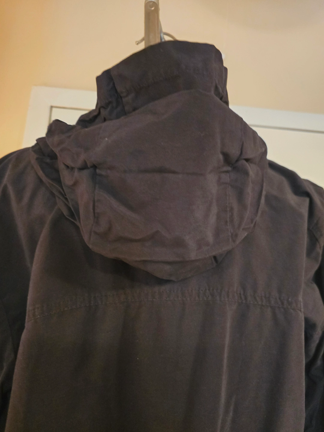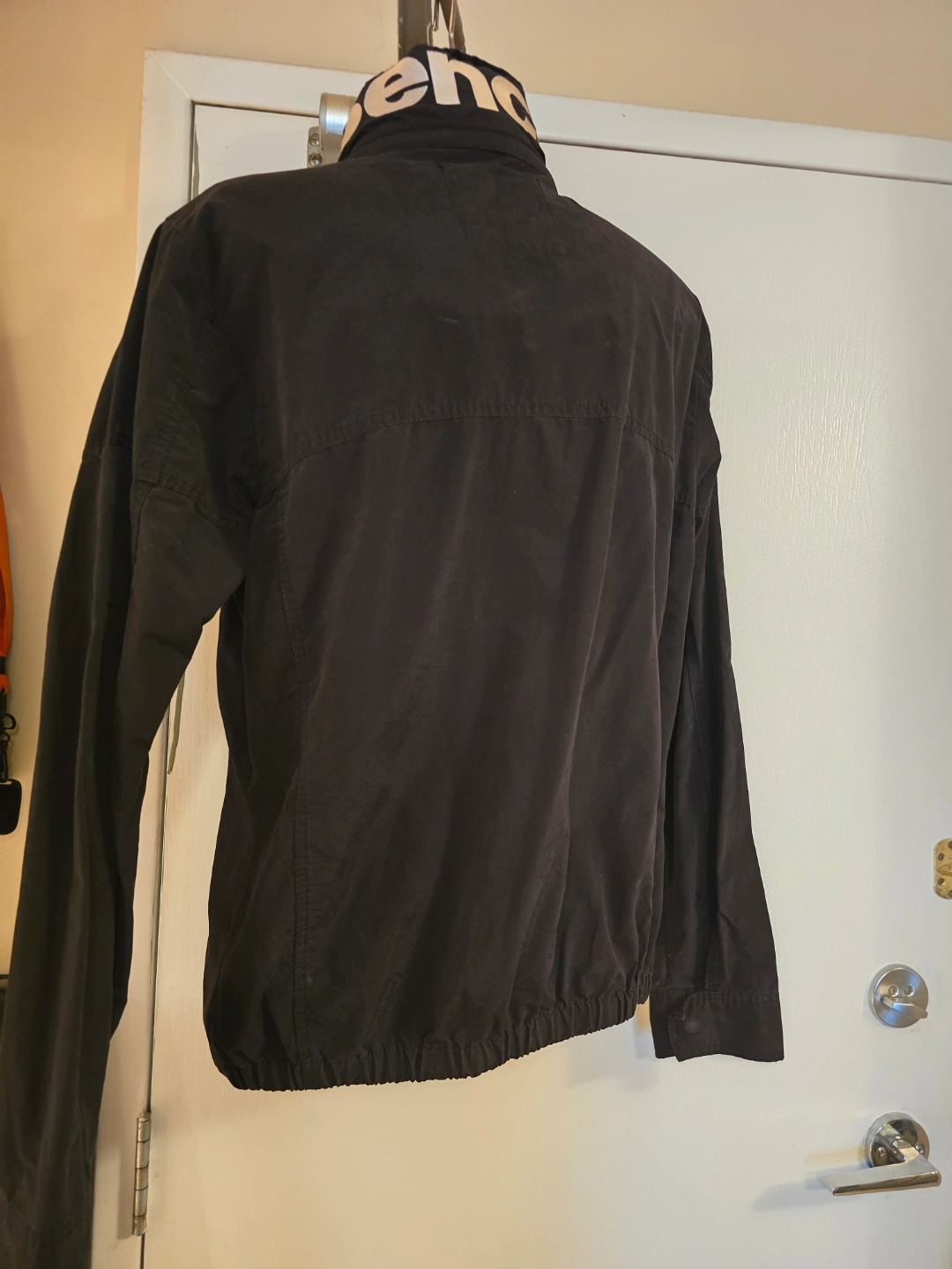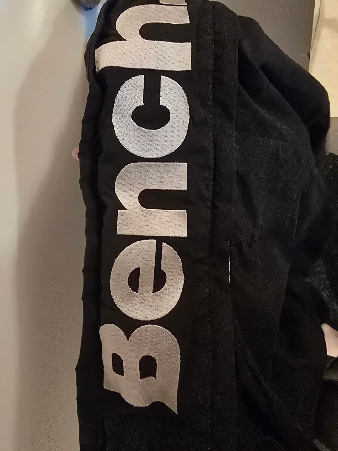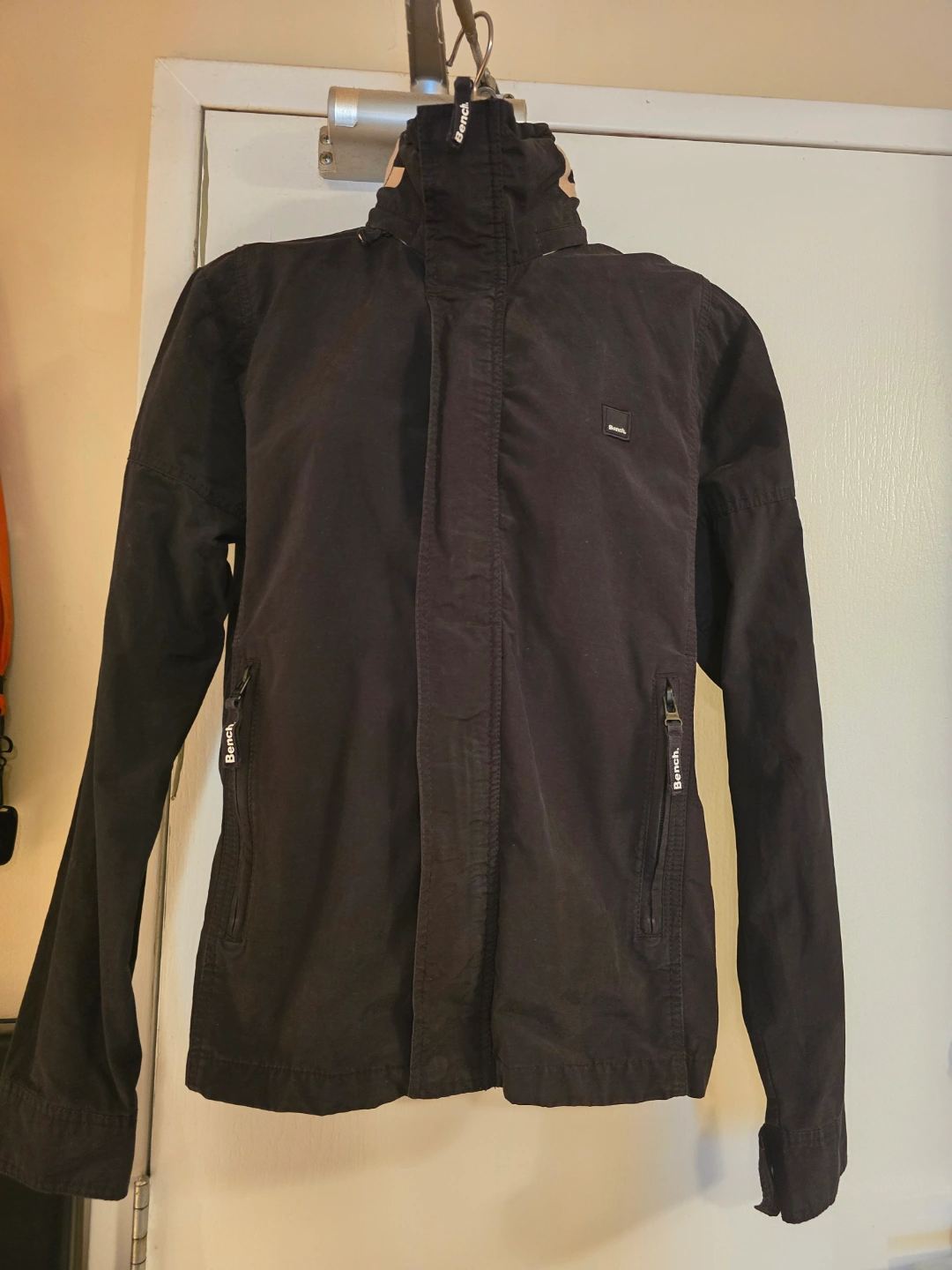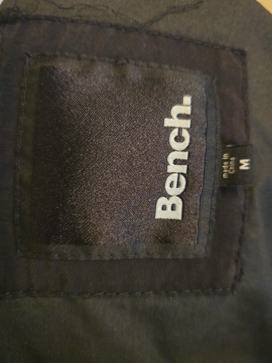65Black Bench jacket. Size medium. Features a hood, zipper closure, and pockets. Made in China.