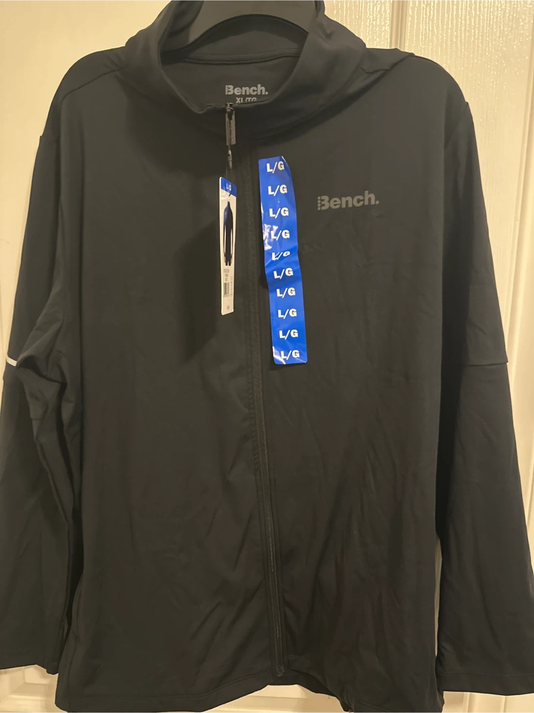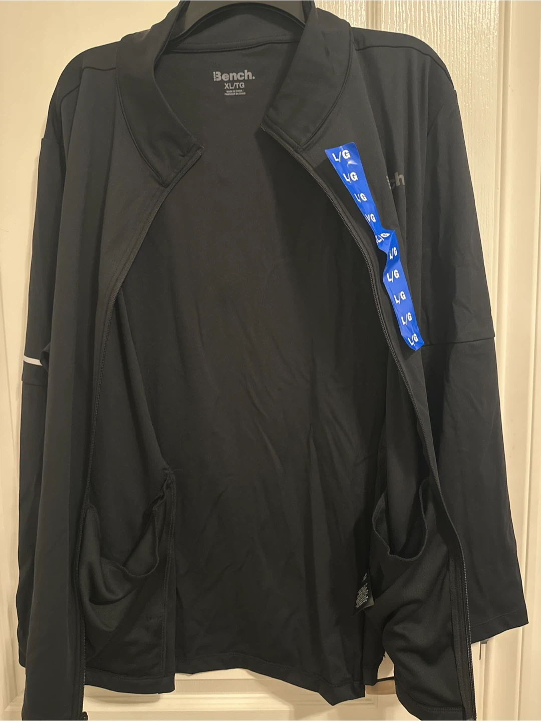 Bench jacket in sizes Small, medium and large in black color. Two inside pockets. Brand new.