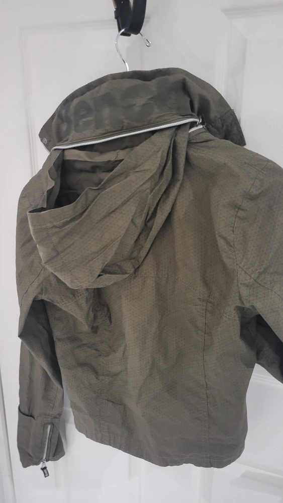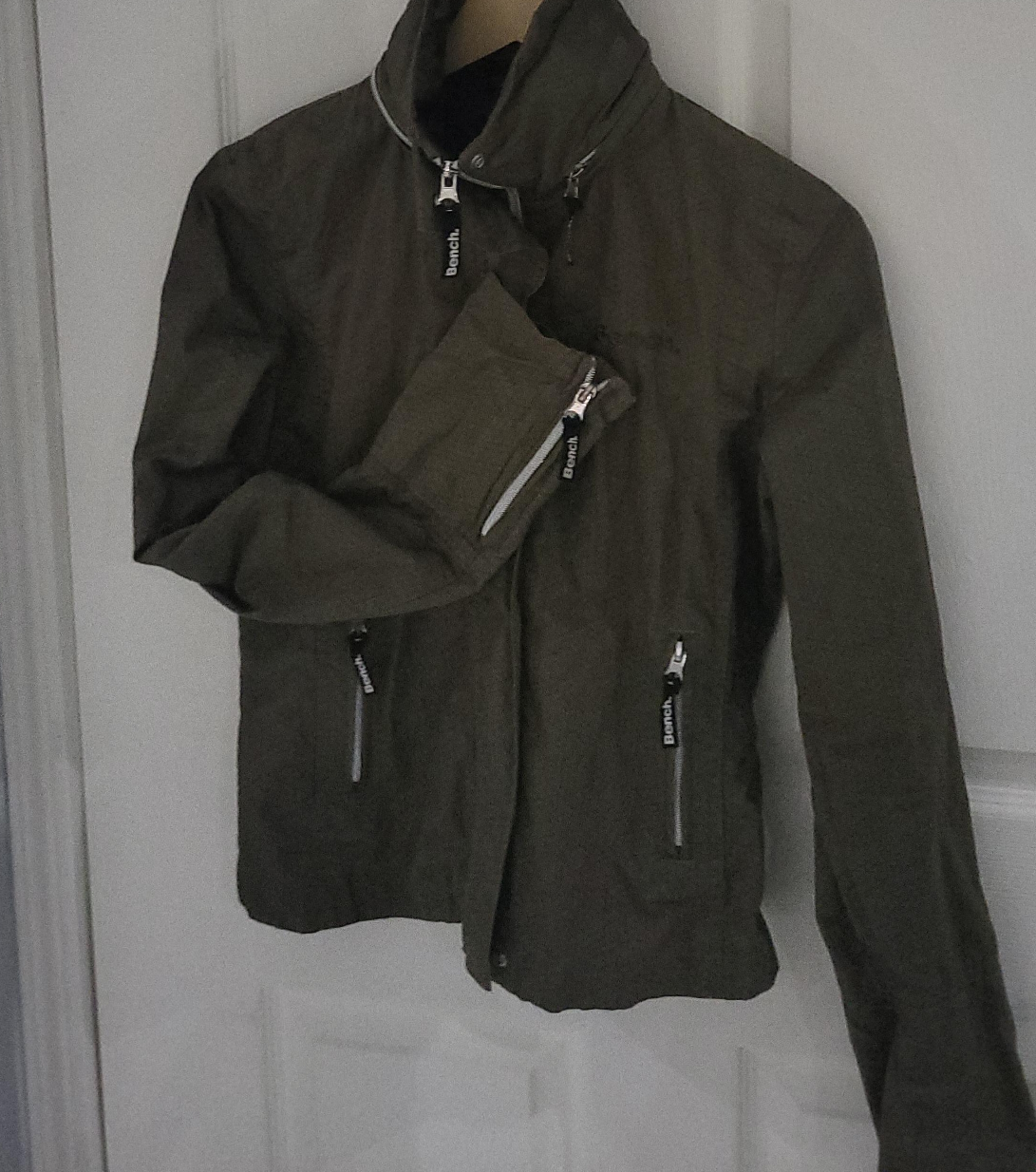 Bench jacket in a nice olive green colour. It's a size medium. Perfect for spring or fall!