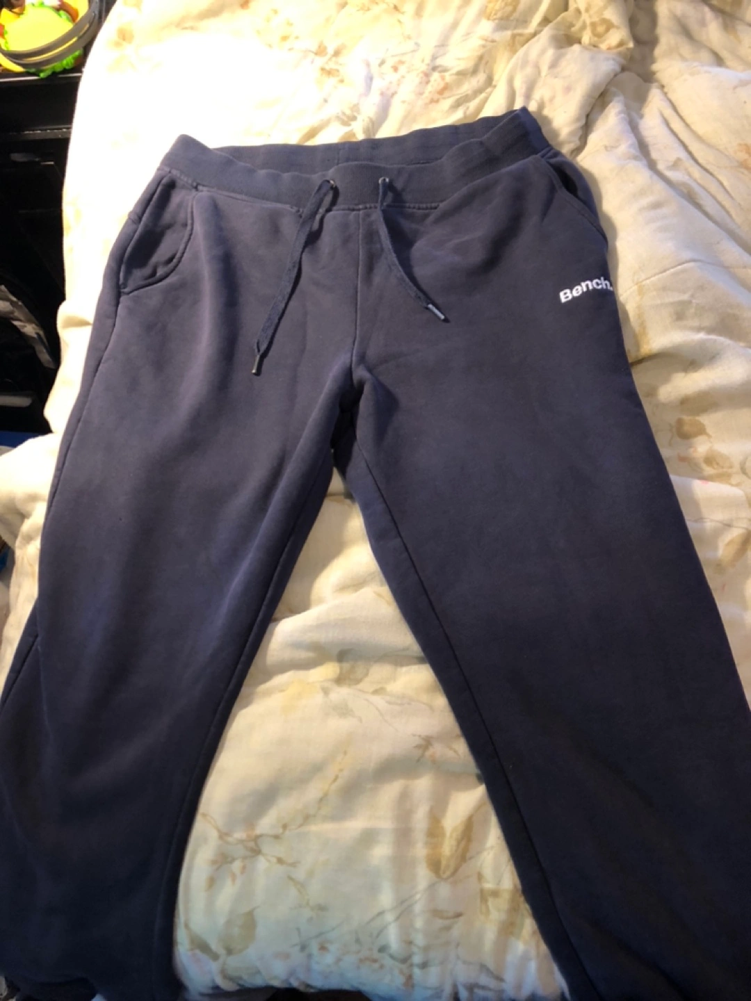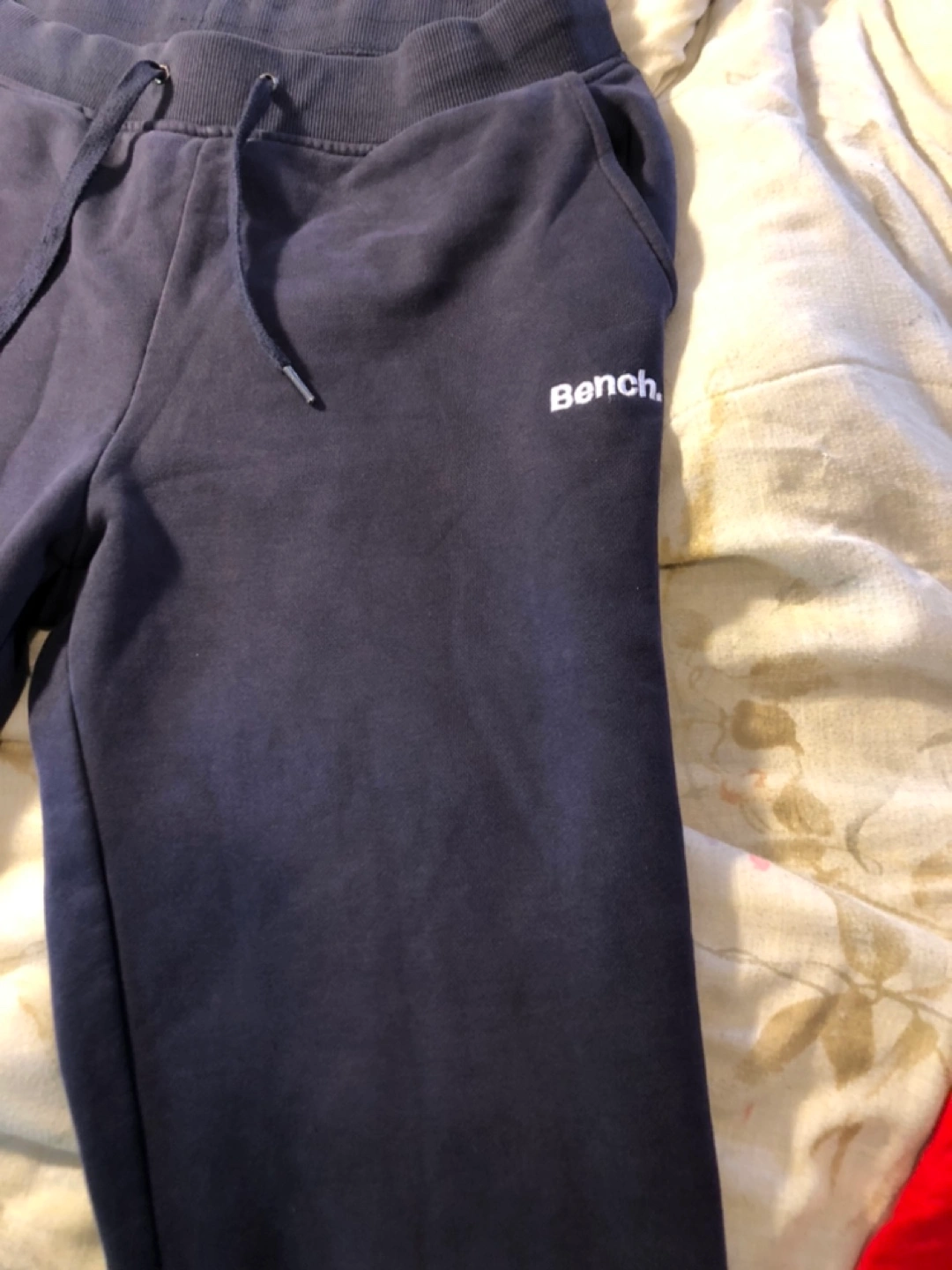 Selling a pair of Bench sweatpants in blue. They're in good condition and super comfy for lounging around the house or running errands!