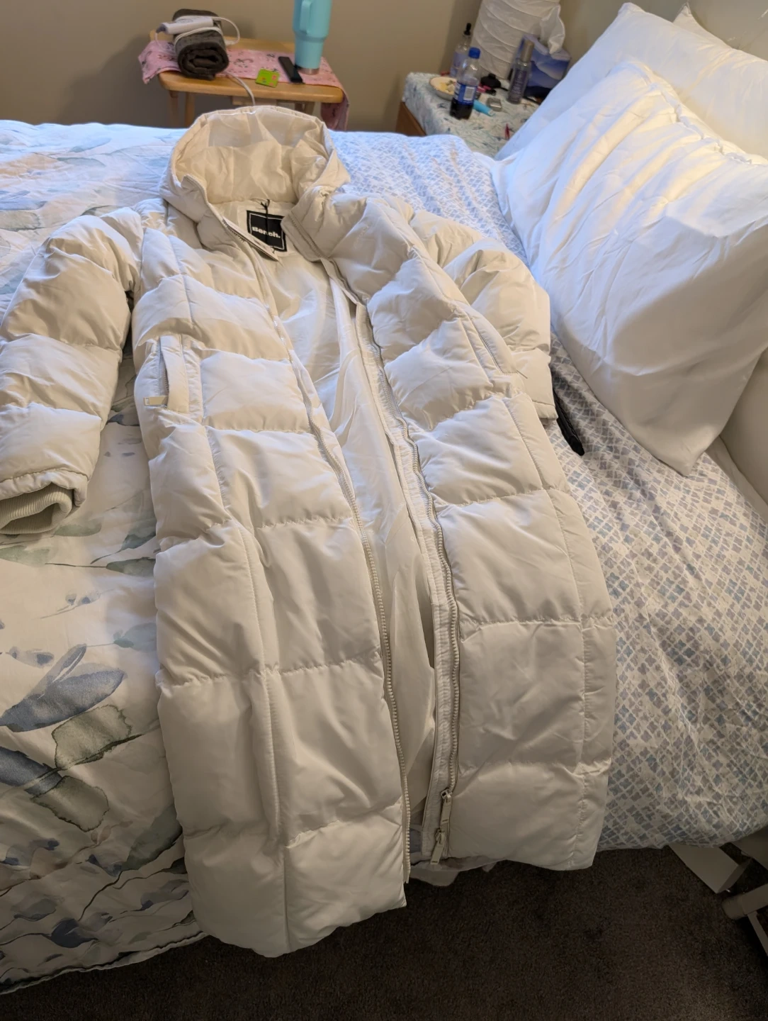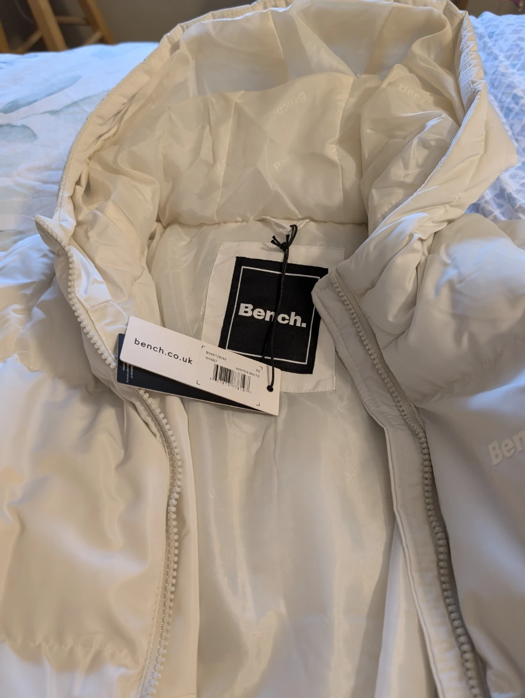 10Selling a Bench. white puffer coat in size XS. It's in great condition and perfect for staying warm during the colder months! Brand new without tags