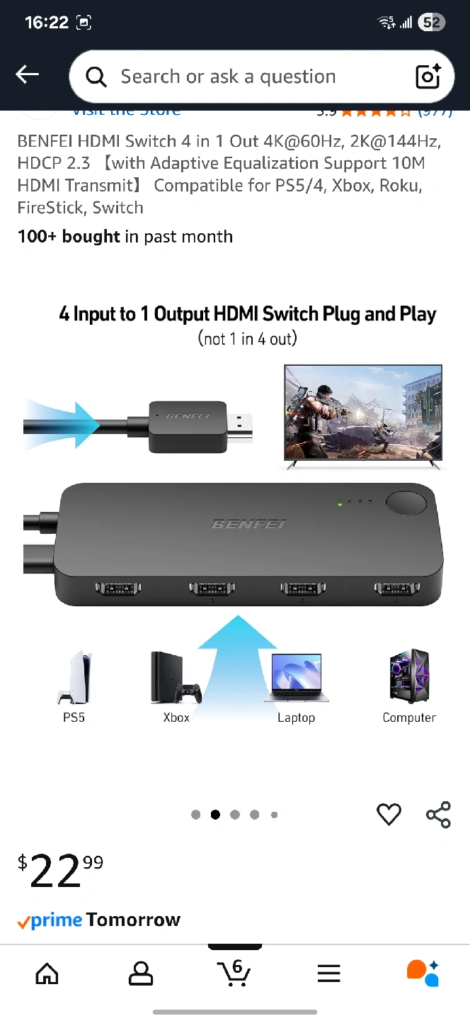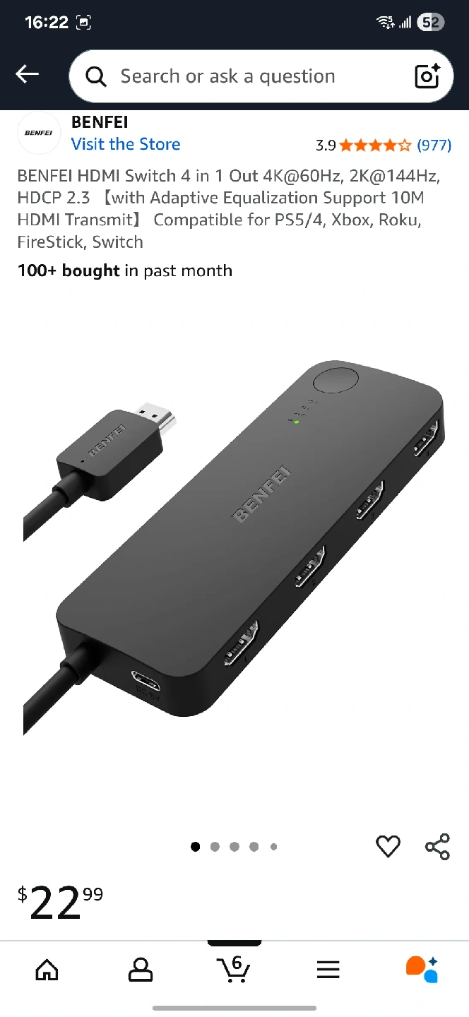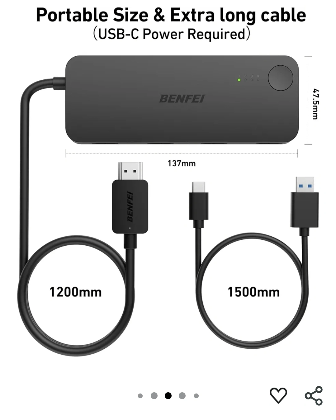 Selling a BENFEI HDMI Switch, practically brand new! This handy device supports 4K at 60Hz and 2K at 144Hz, making it perfect for gaming or streaming. It's compatible with PS5/4, Xbox, Roku, and Firestick. Originally bought for $22.99. Get yours today!