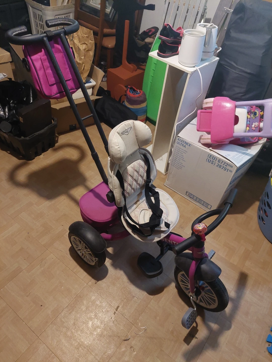 5Selling a Bentley stroller tricycle in pink! It's in great working condition and ready for a new little rider - needs cleaning.