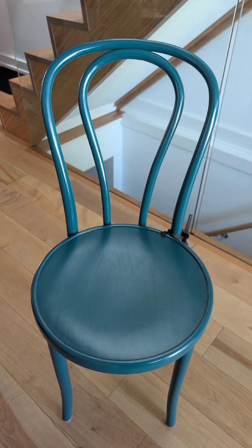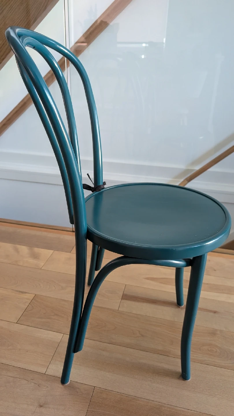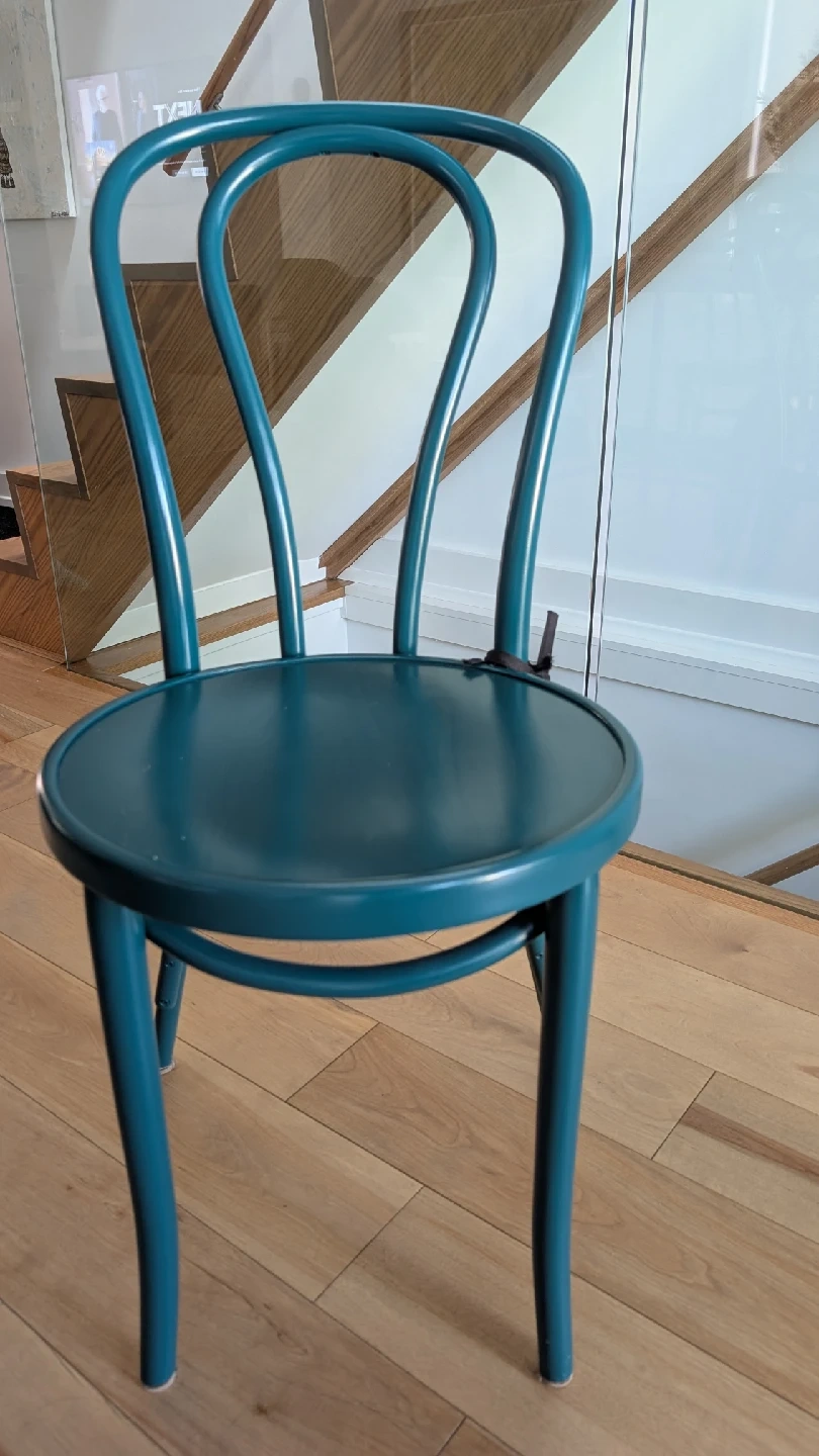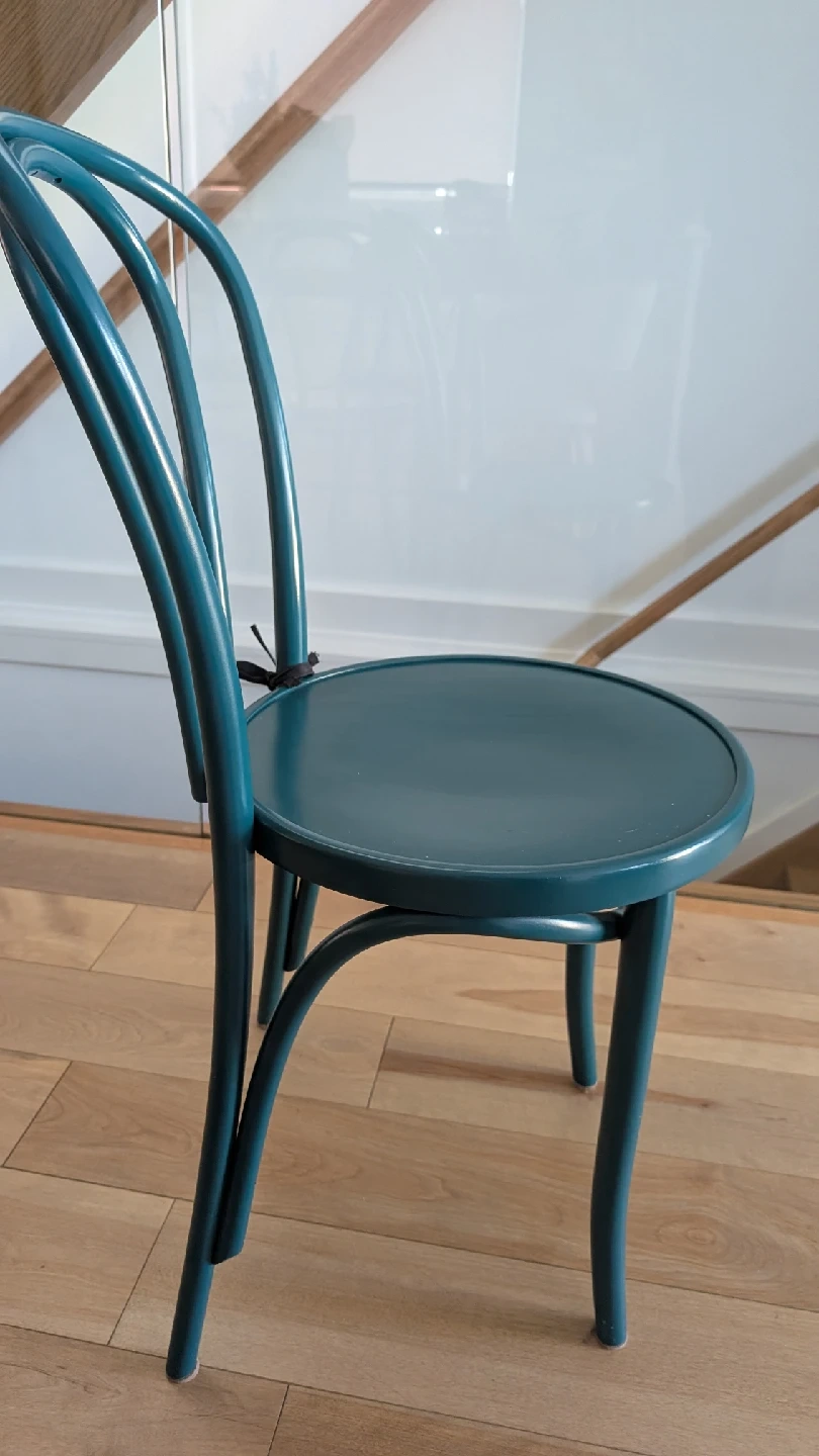 60Selling lovely bentwood chairs in a teal blue colour. They are in great condition and would look perfect in any room! It's a classic design that's both stylish and comfortable. It is a set of four and the price shown is per piece.